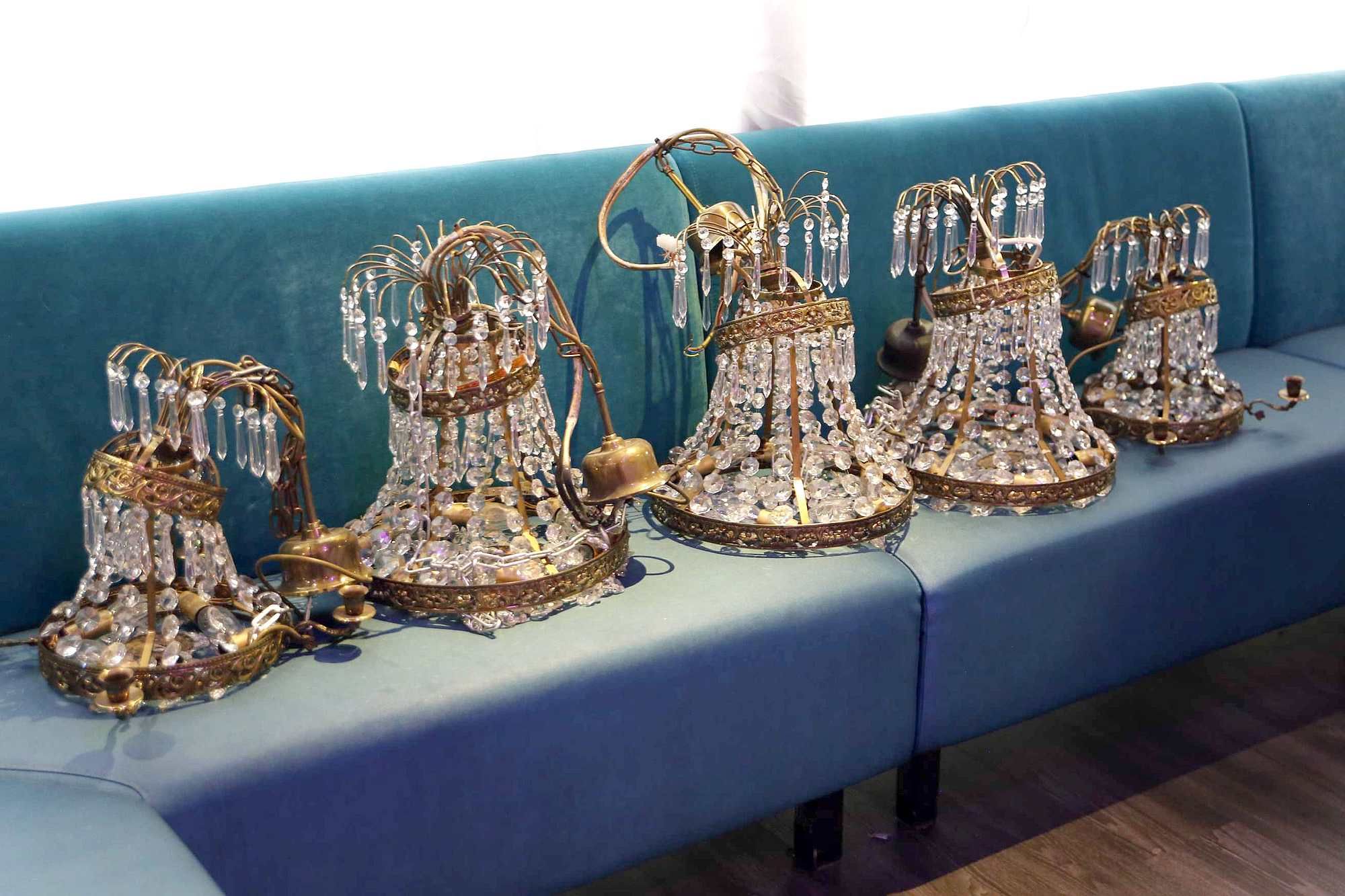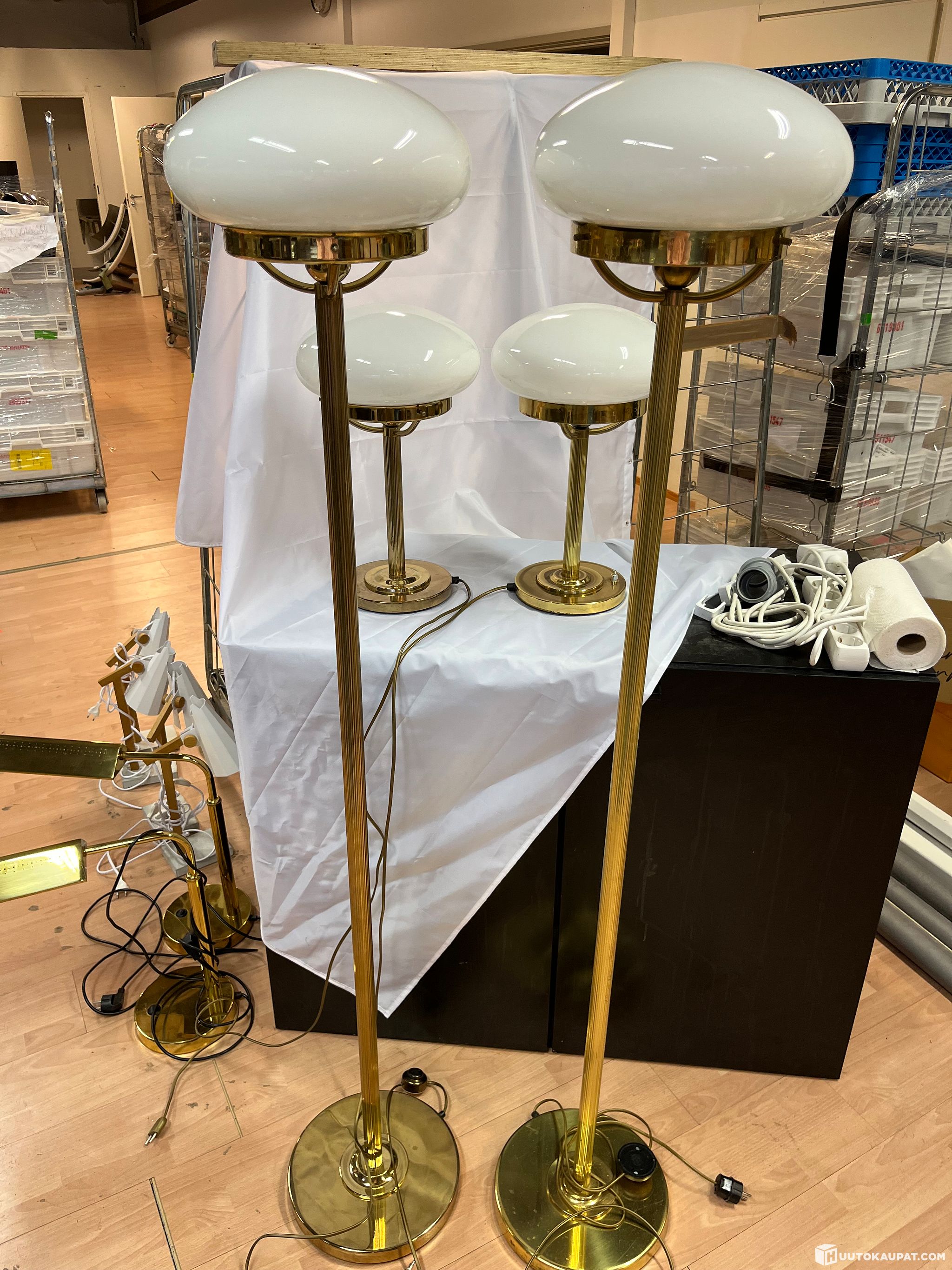 Hotellikäytössä 1940-luvun tyylisissä hotellihuoneissa olleita pöytä- ja jalkavalaisimia. Myydään tarpeettomana uudistuksen alta.