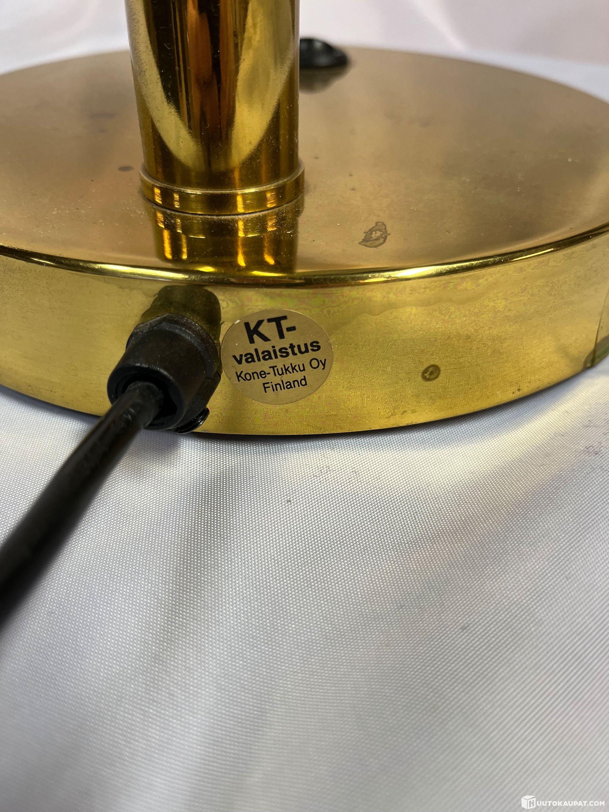 Erottuva suomalainen design-pöytävalaisin, jonka on valmistanut KT-Valaistus Kone-Tukku Oy Suomessa 1900-luvun puolivälin ja loppupuolen välillä.