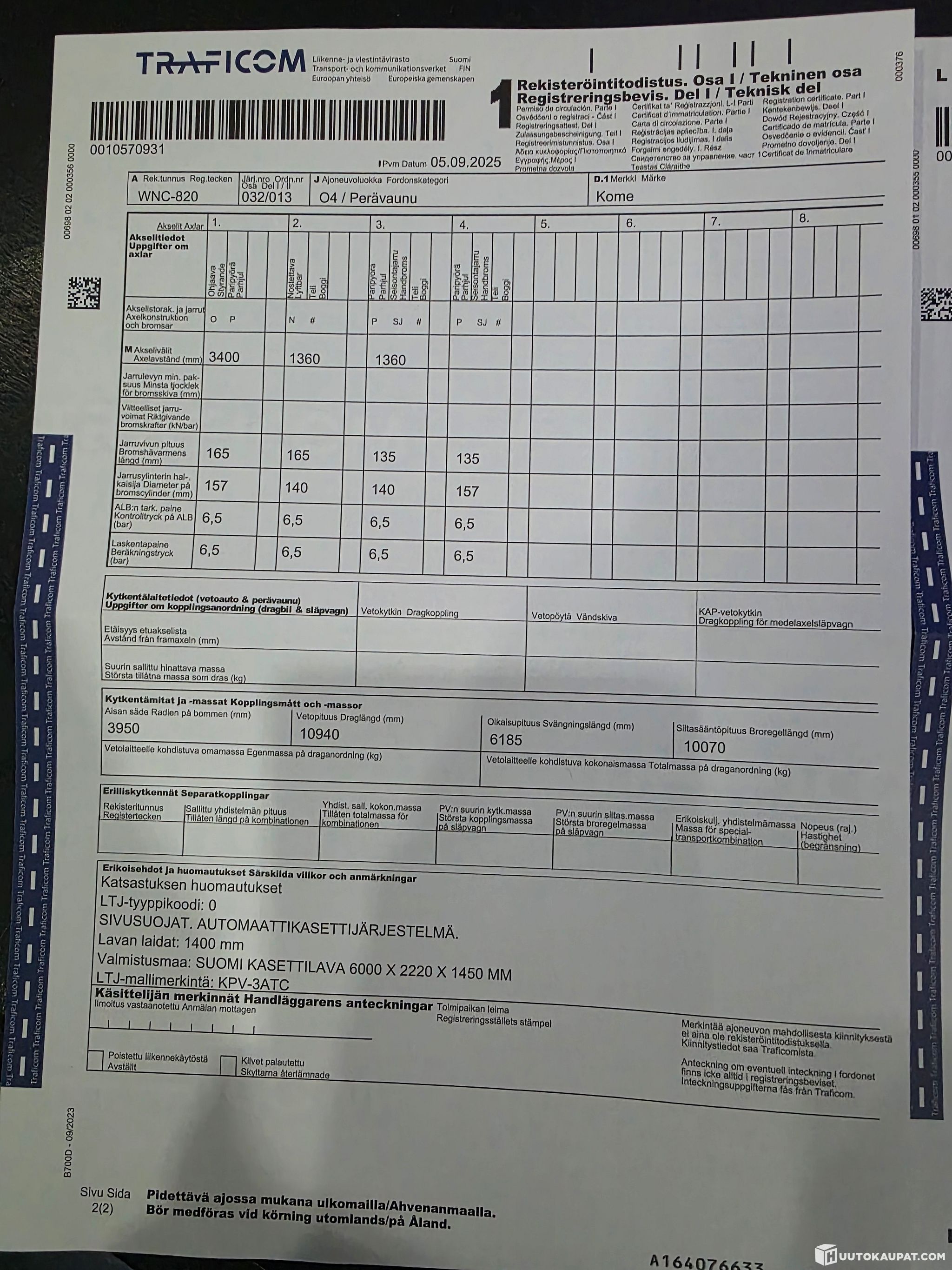Kokemäen AutoCenter Oy ilmoittaa, Huutokaupat.com myy