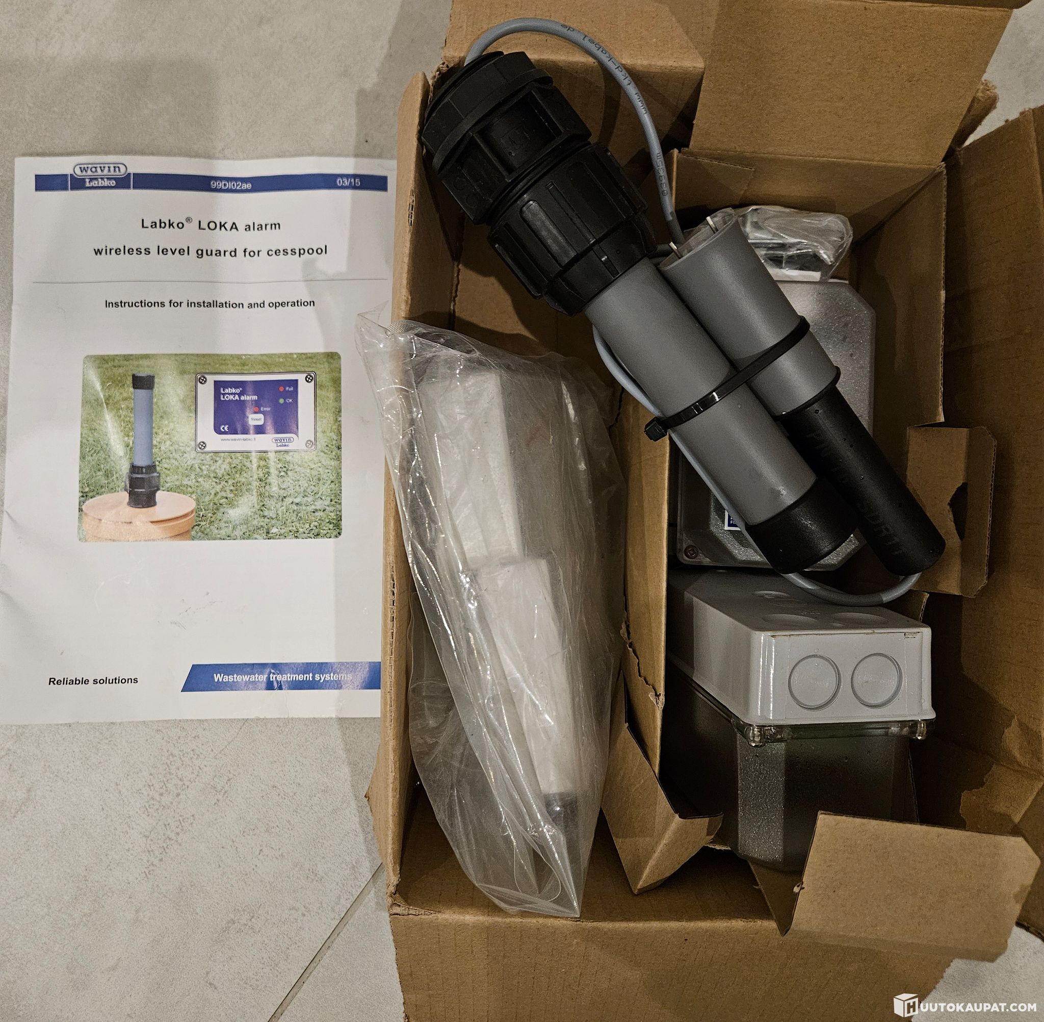 Labko LOKA alarm lokasäiliön langaton pintavahti kuuluu pakettiin.