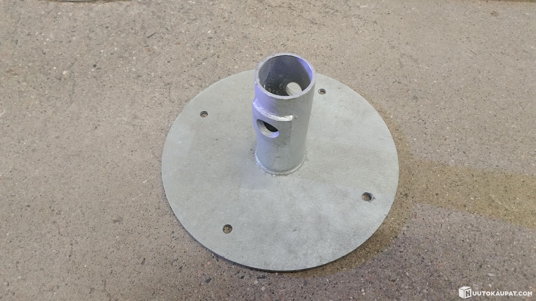 Mikäli halutaan korkeussäätöä, valikoimistamme löytyy terassijalan päähän lyötävä korkeussädettävä kiinnike (tuote 502142274). Suositeltu maksimikuormitus 750 kg. Pohjalevyn koko 5 x 300 mm, putken koko 60 x 3 mm. Korkeus 150 mm.