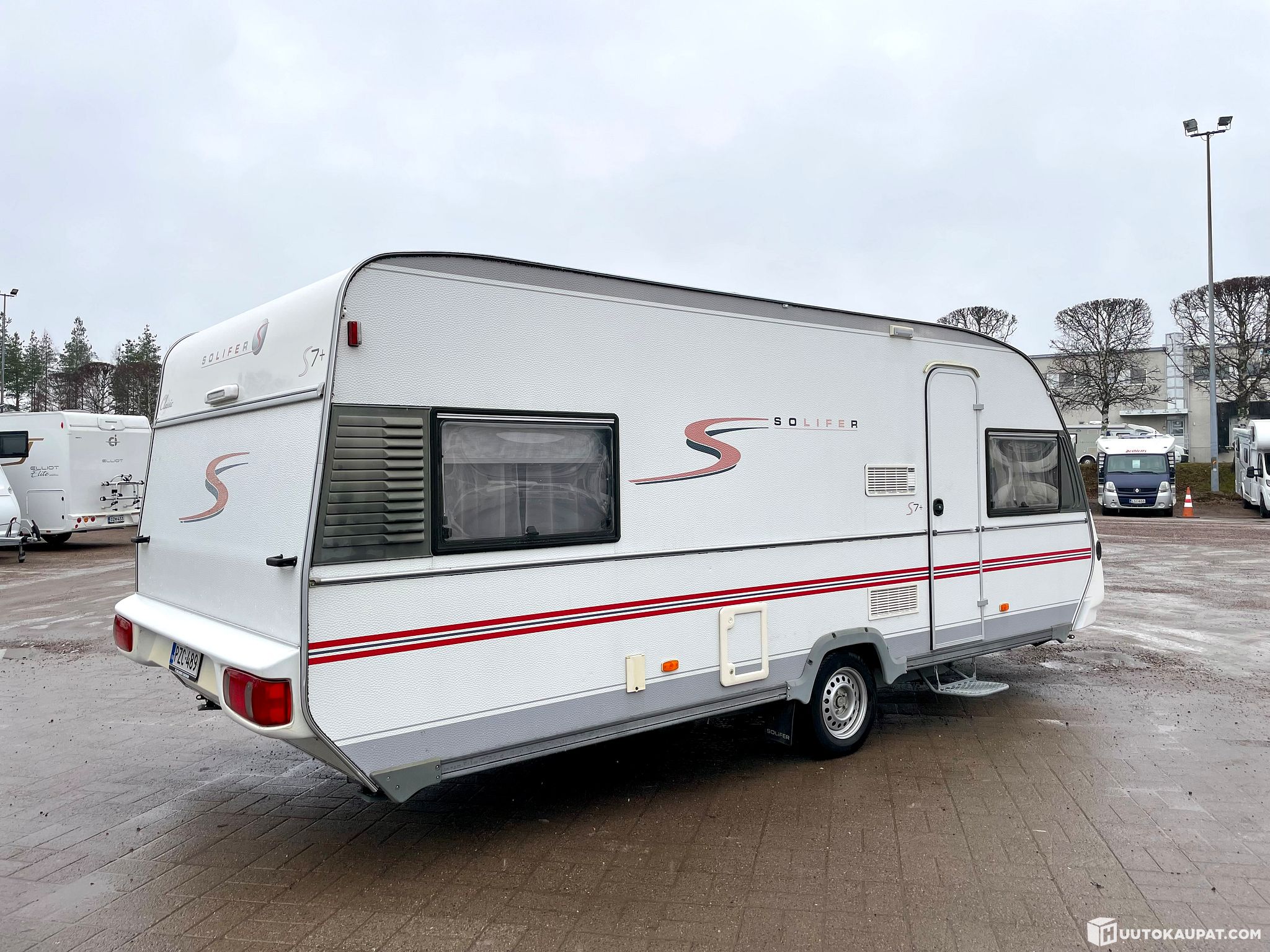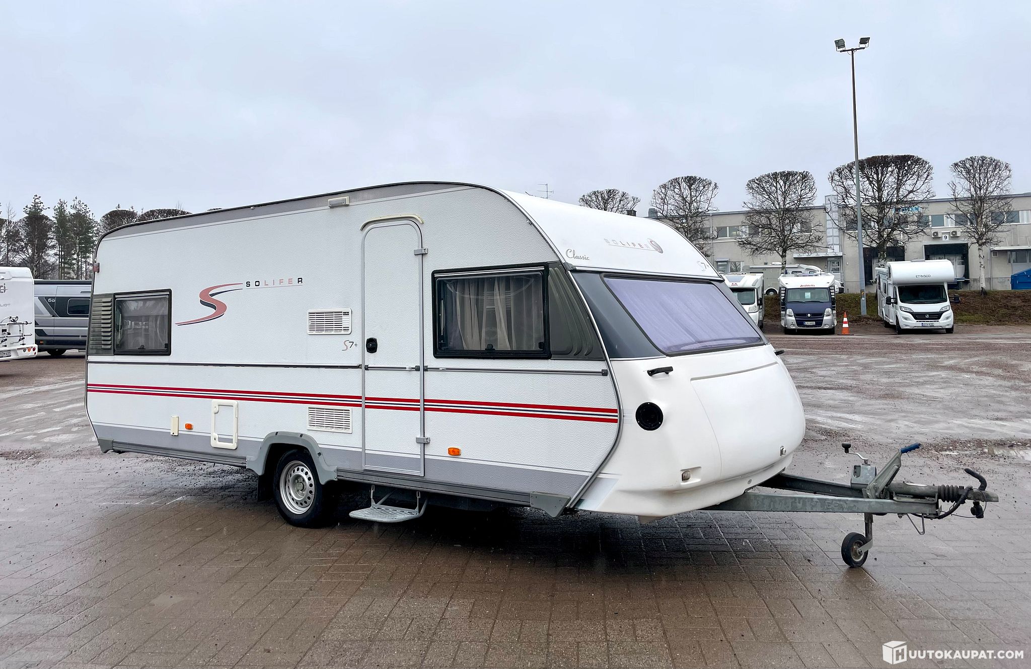 Tästä edullisesti lämmin ja luja Suomessa valmistettu Solifer-matkailuvaunu reissuun tai vaikkapa lisämajoitteeksi mökin pihalle. Vaunu on ikäisekseen oikein siistissä kunnossa ja mukavasti varusteltu. Leveän parivuoteen ja kätevän yläkaapistosta aukeavan vuoteen ansiosta kiinteät petipaikat löytyvät kolmelle, lisäksi etuosan istuinryhmästä saa tilavan vuoteen kahdelle aikuiselle. Vaunun on 2,5 metrin leveyden ja lukuisten kaappien ansiosta tilaa on tarvittaessa suuremmallekin perheelle.