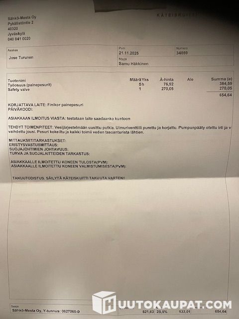 Sopimuksen mukaan. Jose Turunen 050-4133202. Noutopiste Sähkömesta Oy, jossa ollut huollettavana.