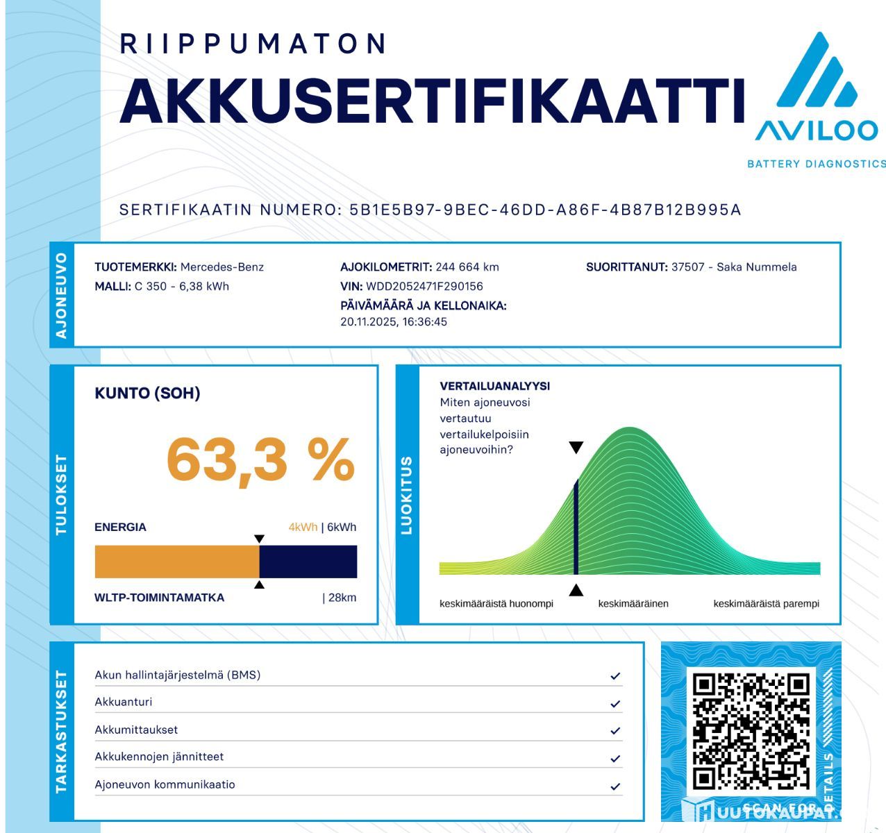 Miinukset: Oikeastaan ainoa havaittu miinus on 63,3% akkutestitulos. Täyssähköajon kantama on hieman rajoittunut, mutta auto toimii moitteettomasti tehokkaana hybridinä.
