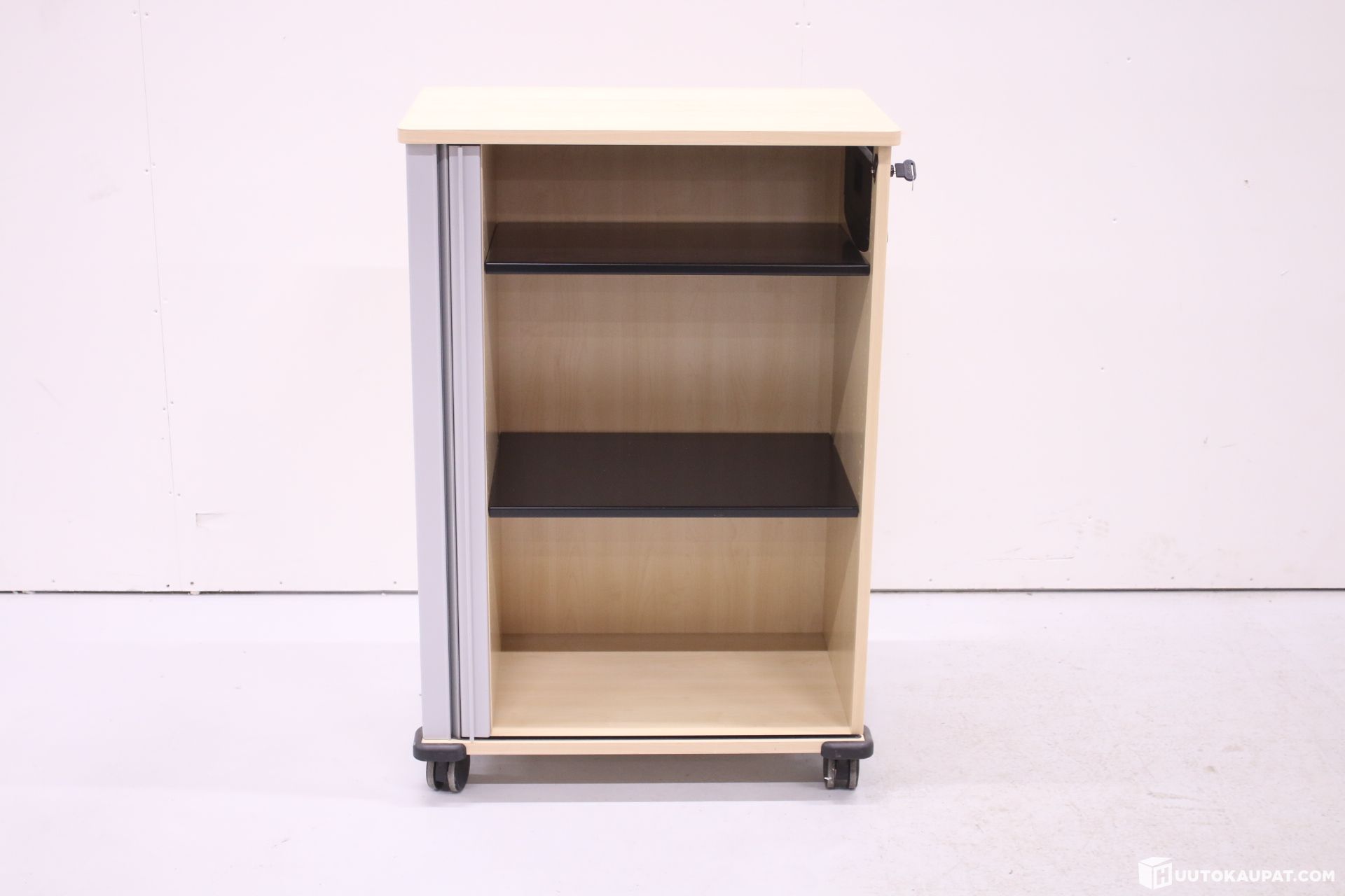 Laadukas Werndl-toimistokaappi lukittavilla rulo-ovella ja pyörillä.