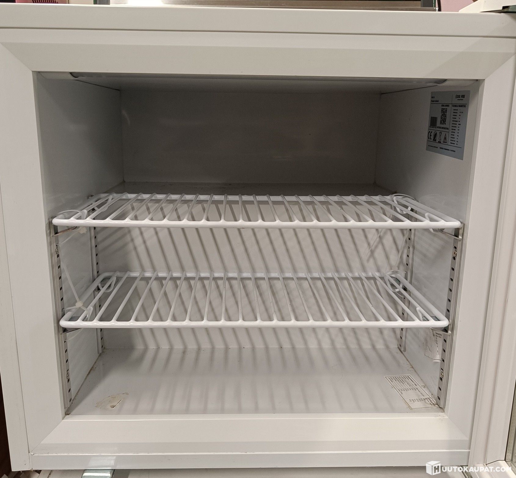Käytetty lukittava lasiovellinen pöytäpakastin.