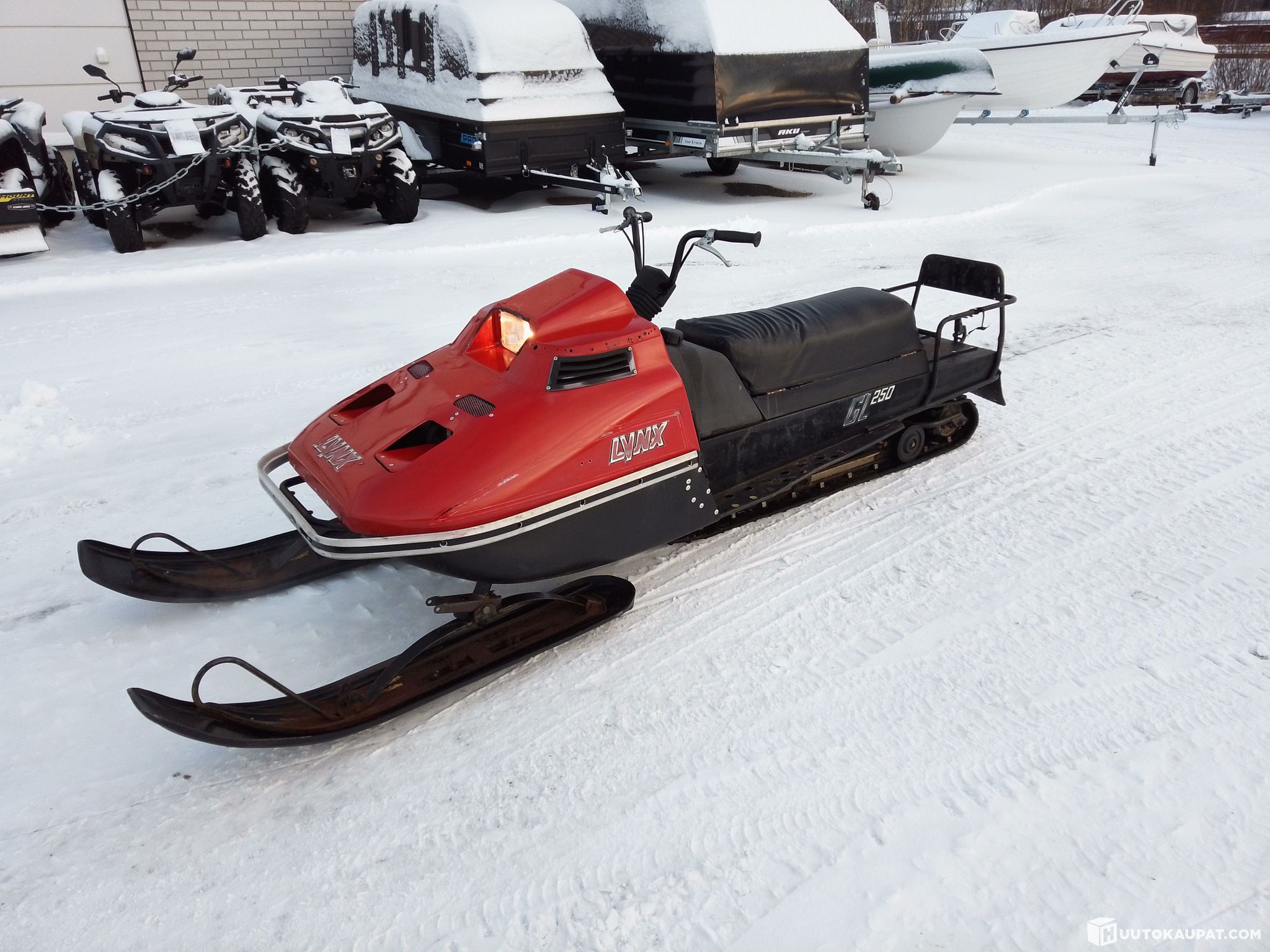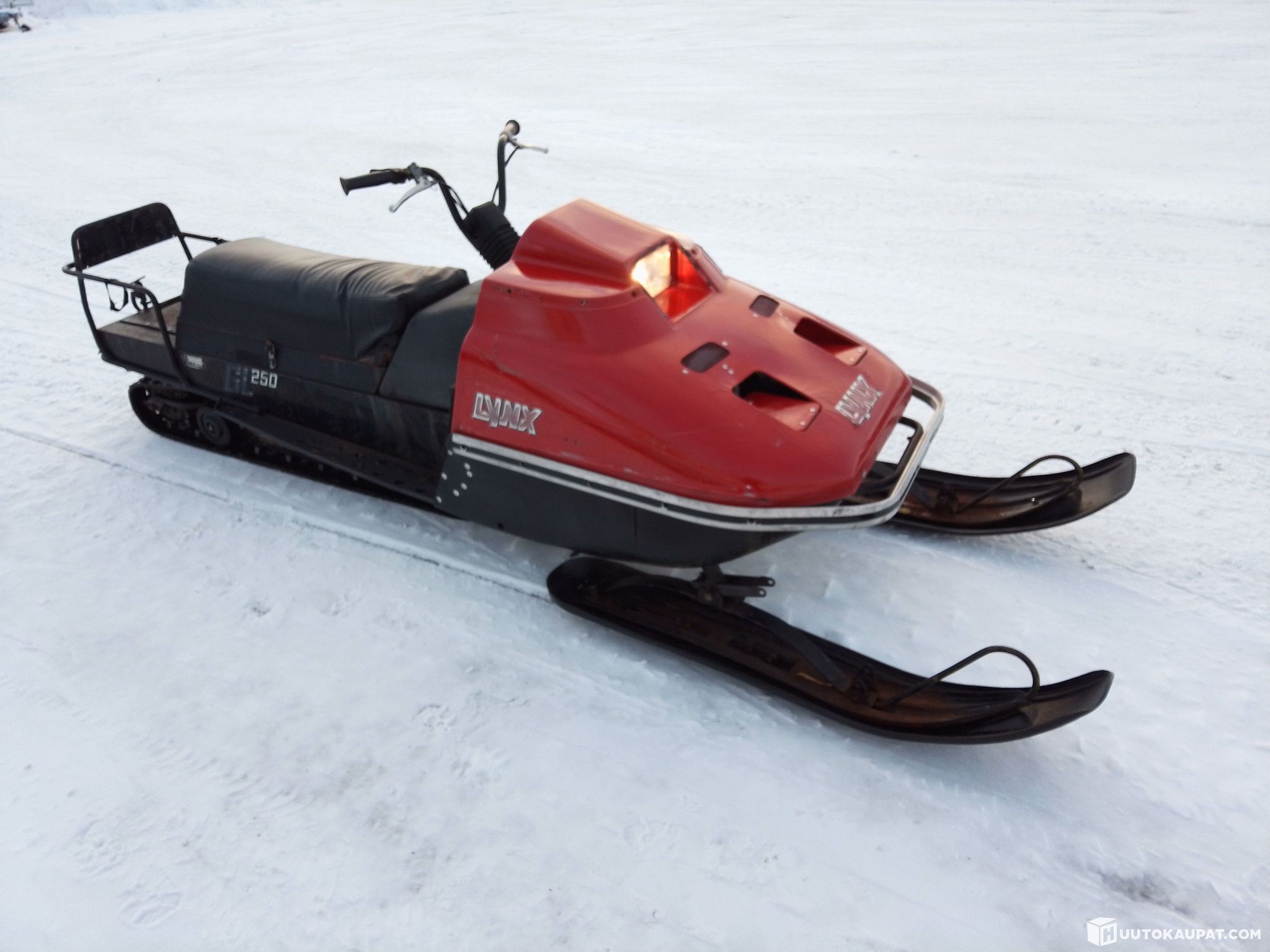 Legendaarinen umpisen kulkija Lynx 250GL-87 Rotax 253 puhallinkoneella. Lähtee käyntiin ja liikkuu. Myydään kunnostettavaksi iän ja mahdollisten piilevien vikojen takia. Laite on ruma ku mikä.