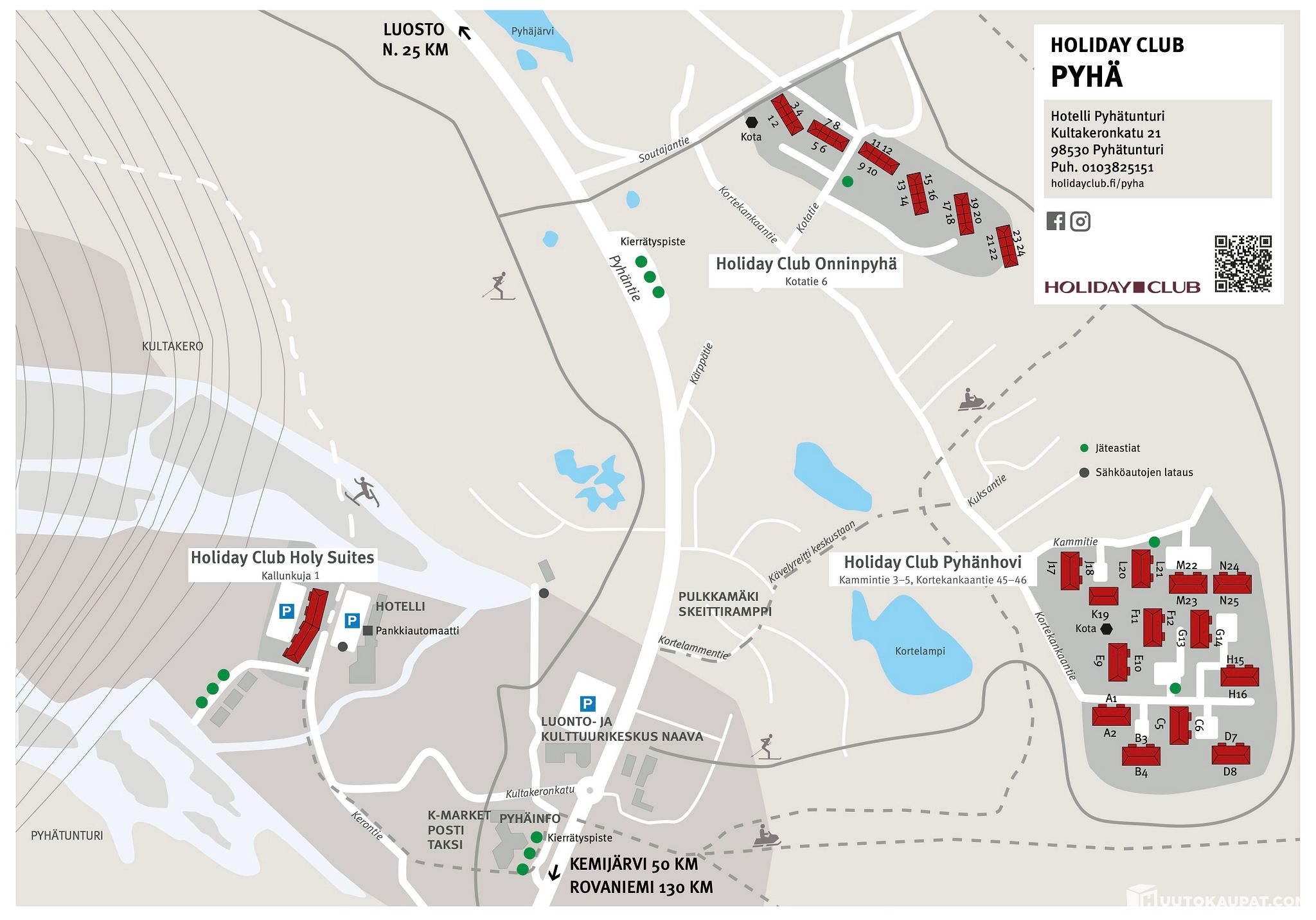 Holiday Club Pyhällä loma-asunto sijaitsee lähellä luontoa, rauhallisella alueella, silti lähellä rinteitä ja palveluita. Pyhätunturi on Pelkosenniemen ja Kemijärven kuntien alueilla sijaitseva noin kymmenen kilometrin mittainen usean tunturilaen ryhmittymä.