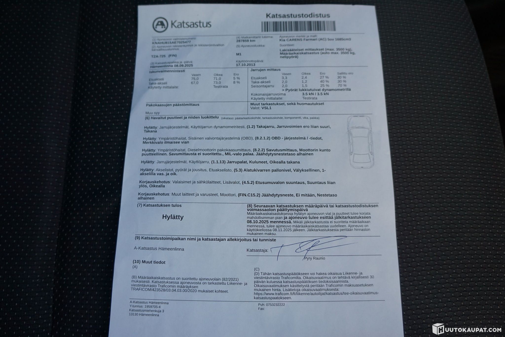 Vikalista katsastuksesta (katso kuvat)