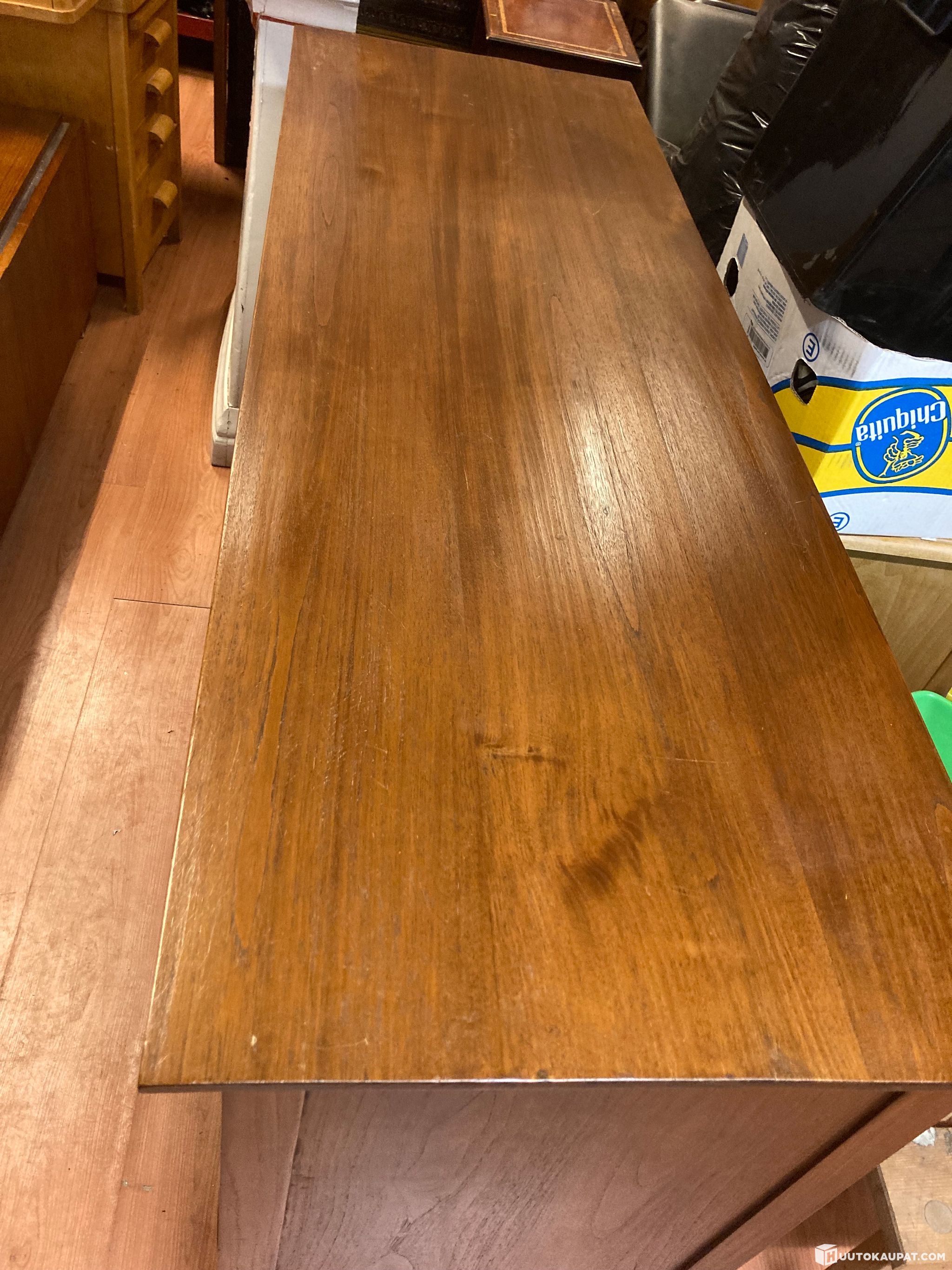 Siisti ja jämäkkä puinen säilytyskaappi, tausta vaneroitu. Säiltyslaatikoissa hyvin tilaa, Massiivitiikkilipasto, nykyaikainen kaappi. Puhdas ja raikas. Korkeus 85cm, leveys 149cm, syvyys 50 cm.