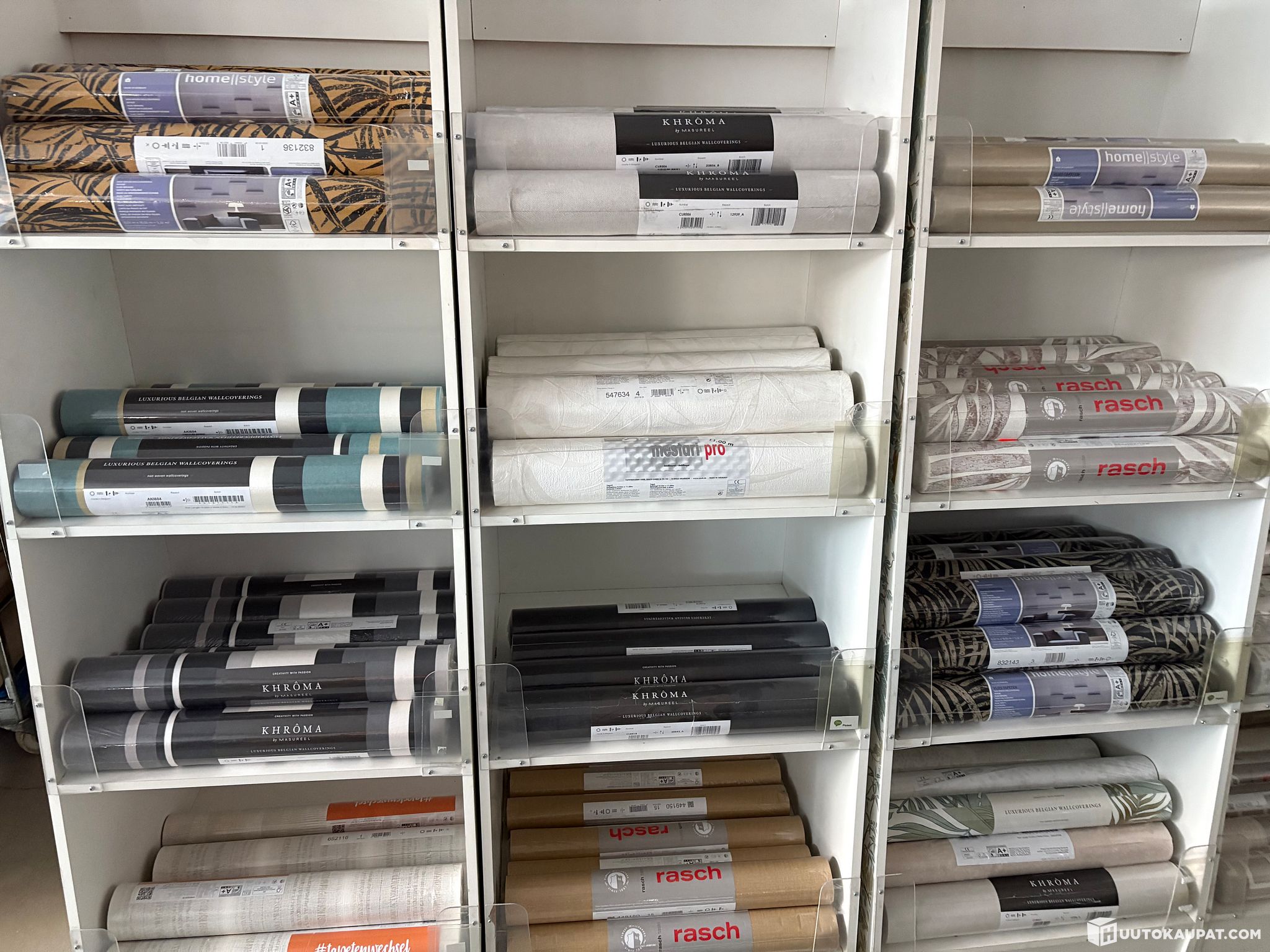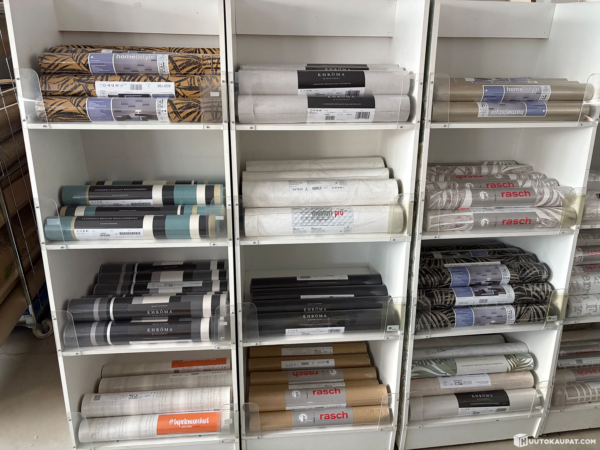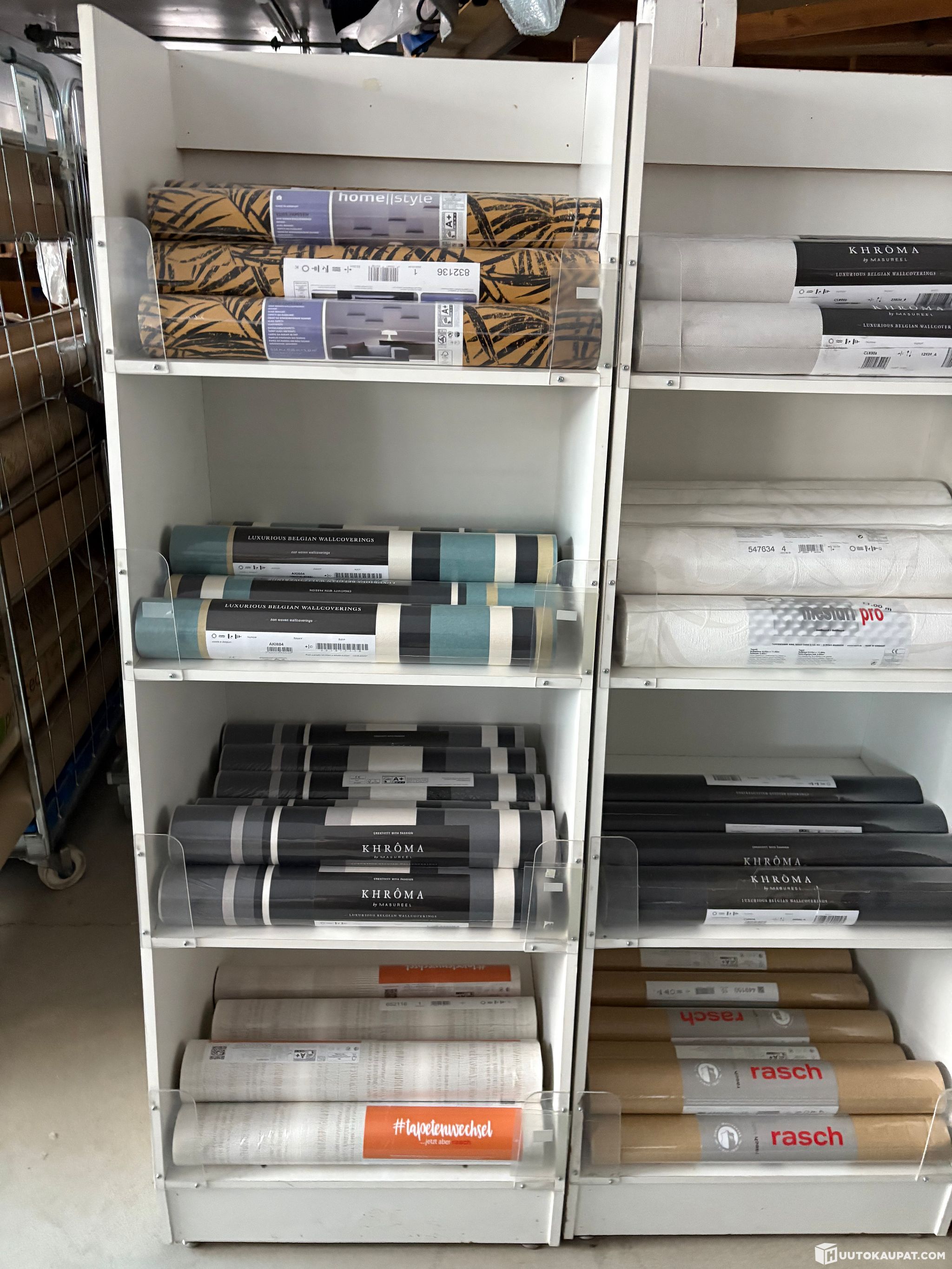 Löytyy myös täysiä lavoja ja myös vaalea sävyisiä tapetteja ja myös vähän lasikuitutapettia.