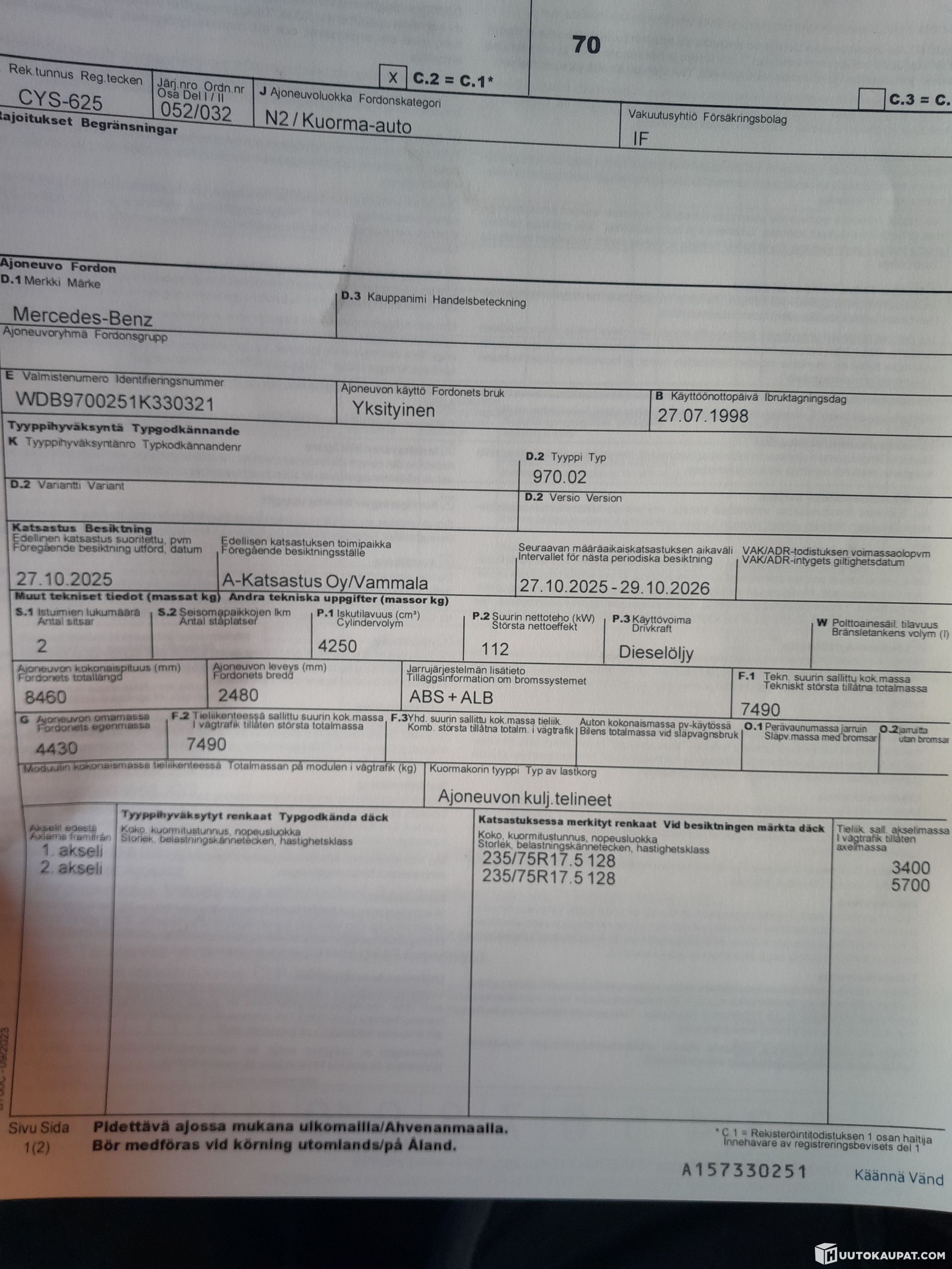 Kokemäen AutoCenter Oy ilmoittaa, Huutokaupat.com myy