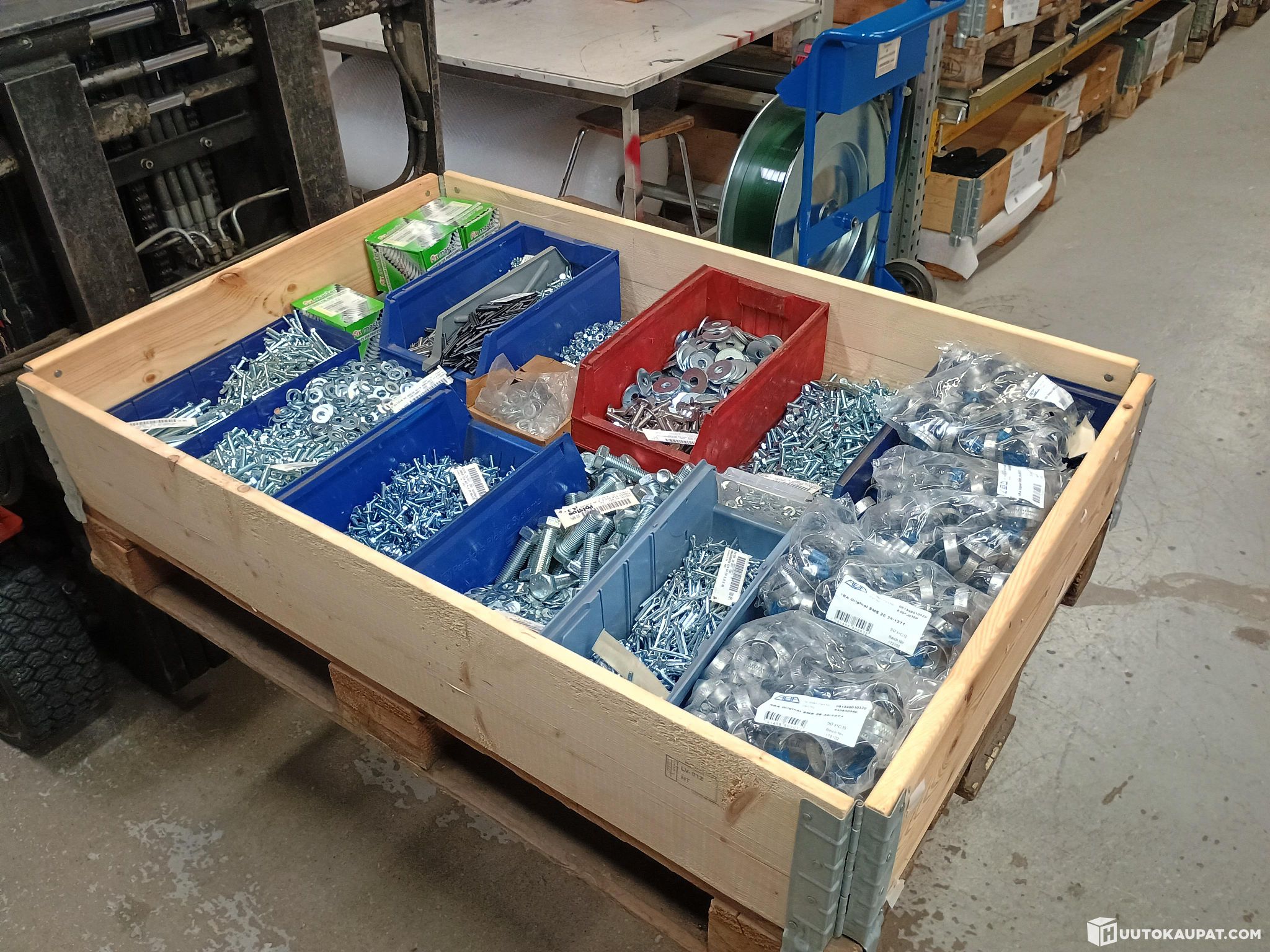 Lavallinen kiinnitystarvikkeita, tarkemmat tiedot näkyvät kuvissa. Punnittu ilman lavaa.