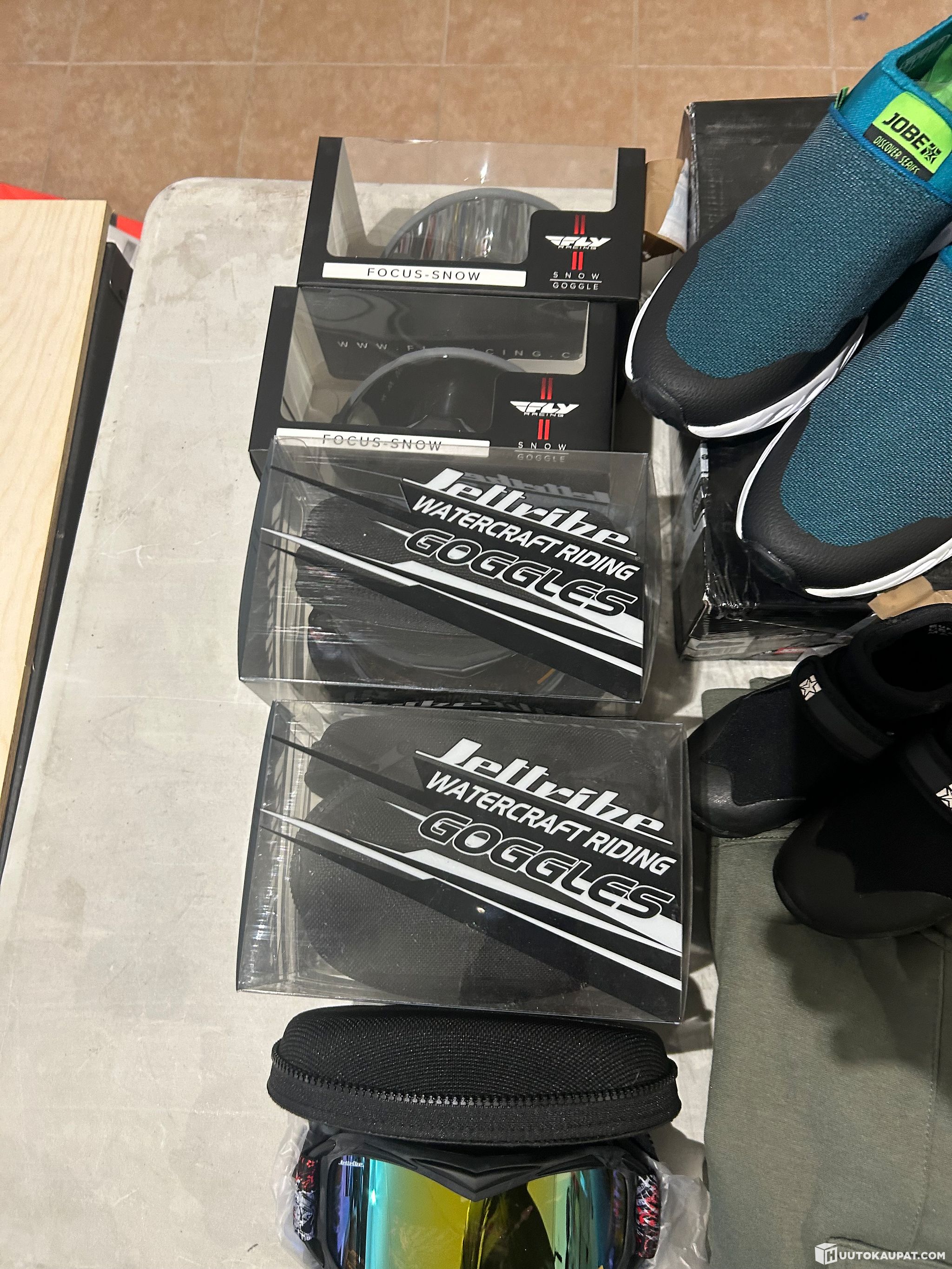 34 kpl poistoerå myymälän Fly Racing ajolaseja + tarvikkeita , Jobe vesiurheilu jalkineet koko 11/45 , Jobe jettiliivit naisten koko M+ , Jetpilot ajolaseja 3x , naisten XS legginsit ym