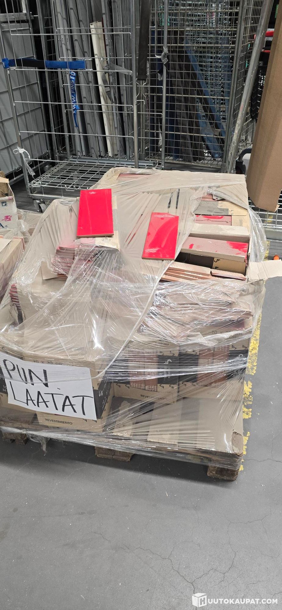 Kaksi lavallista kylpyhuonelaattoja. Punaisia ja valkoisia, lisätietoja kuvissa! Tarkasta määrästä ei tietoa.
