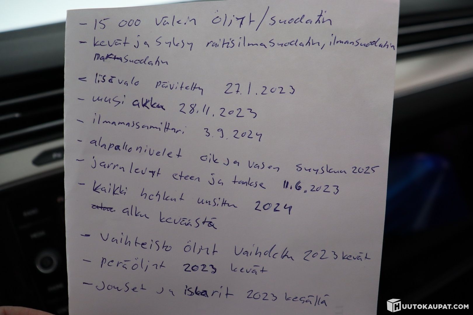 Auto ei ole ollut toimestamme teknisessä kuntotarkastuksessa eikä kaikkien varusteiden toimivuutta ole testattu. Siinä saattaa olla piileviä vikoja, joita koeajolla emme havainneet. Autoon on mahdollista tulla tutustumaan tarkemmin ennen sitovan huudon tekemistä. Sovithan tulostasi etukäteen, kiitos.