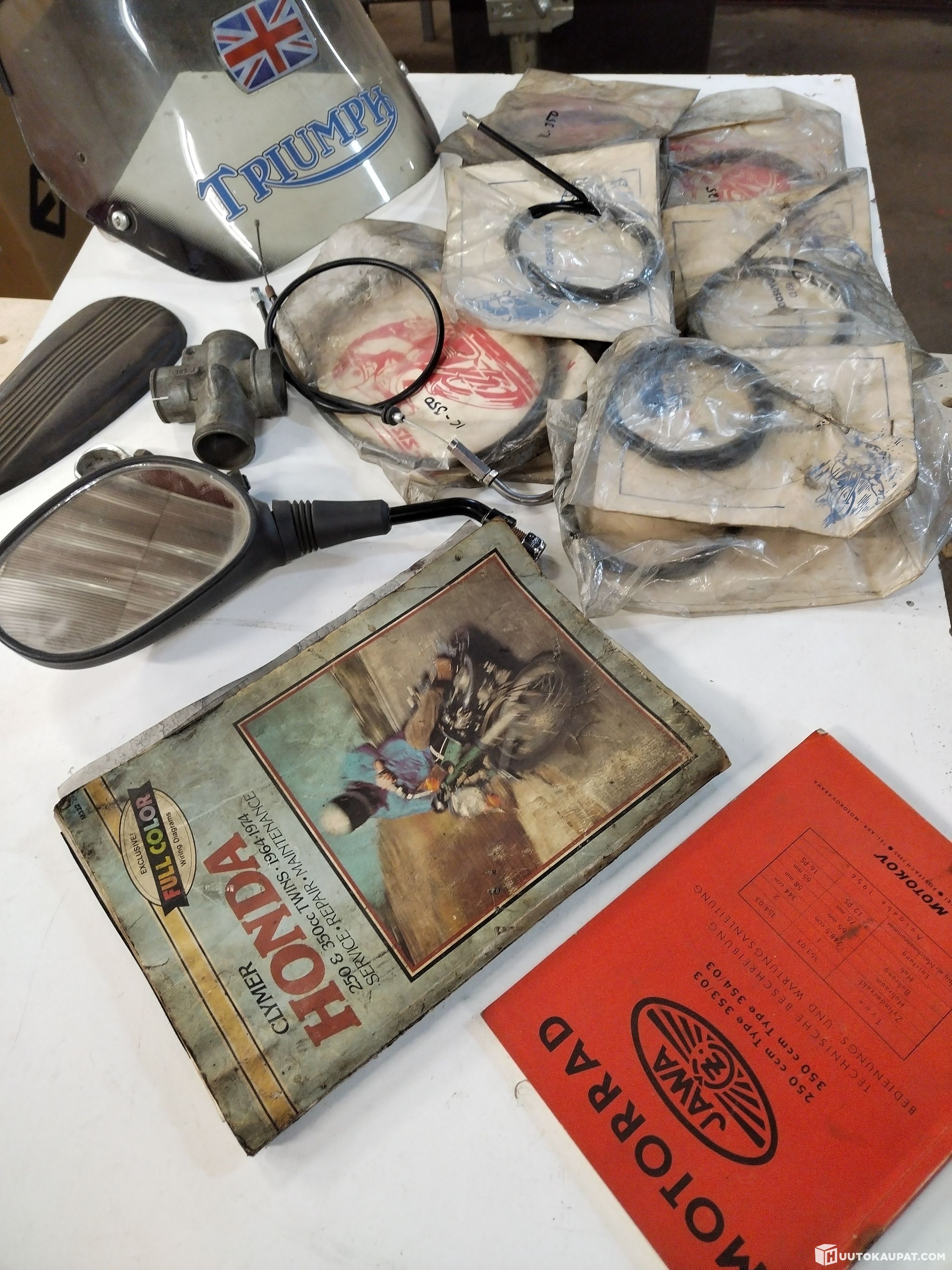 Itäpyörien vaijereita, jawa ja Honda kirjat, lisätuulisuoja (ollut Triumph tiger:ssa) ym.