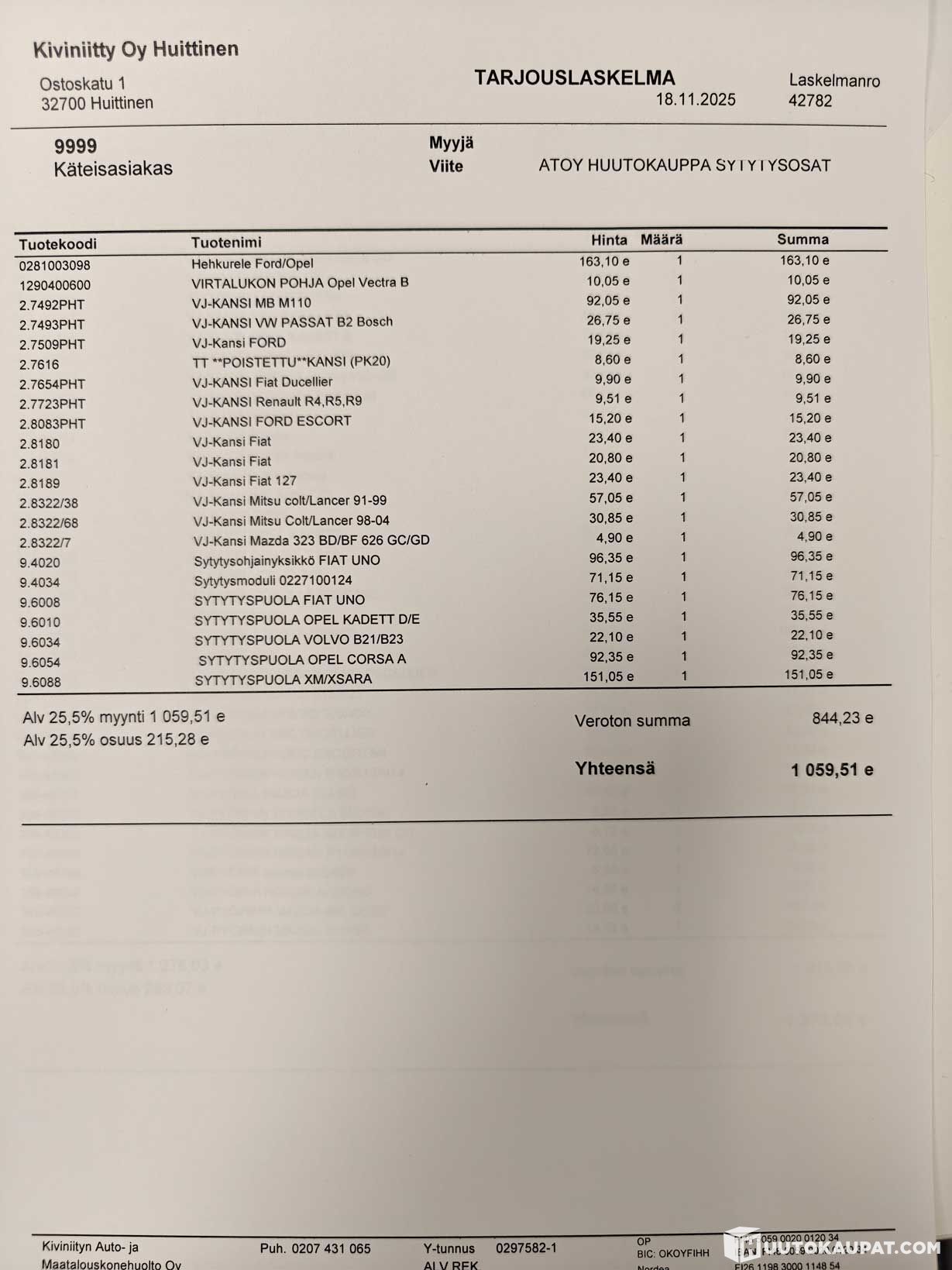 Kiviniityn Auto- ja Maatalouskonehuolto Oy ilmoittaa, Huutokaupat.com myy