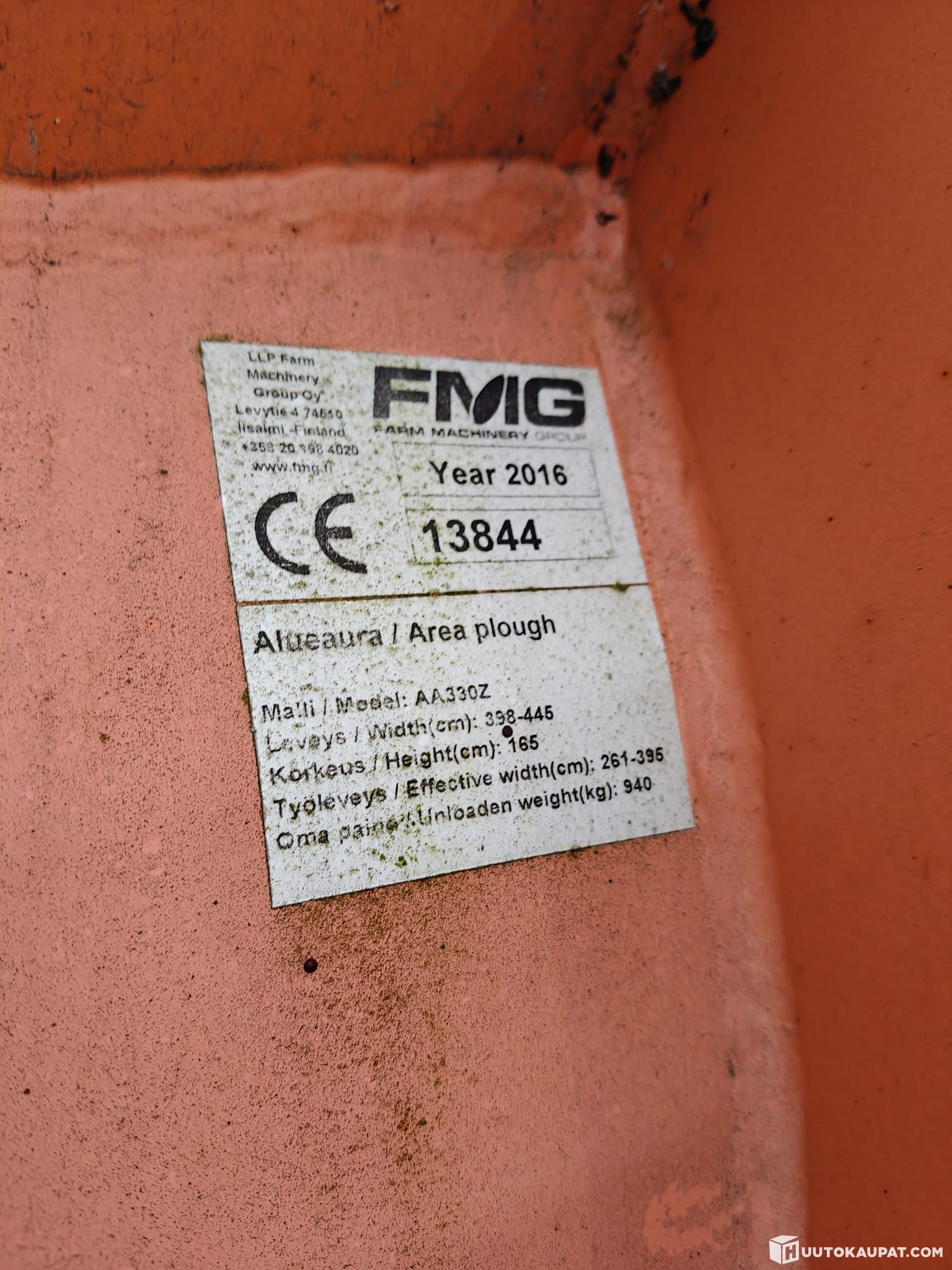 Huutokaupataan asiakkaan toimeksiantona kuvissa näkyvä vuosimallin 2016 FMG AA330Z alueaura talven urakoihin!