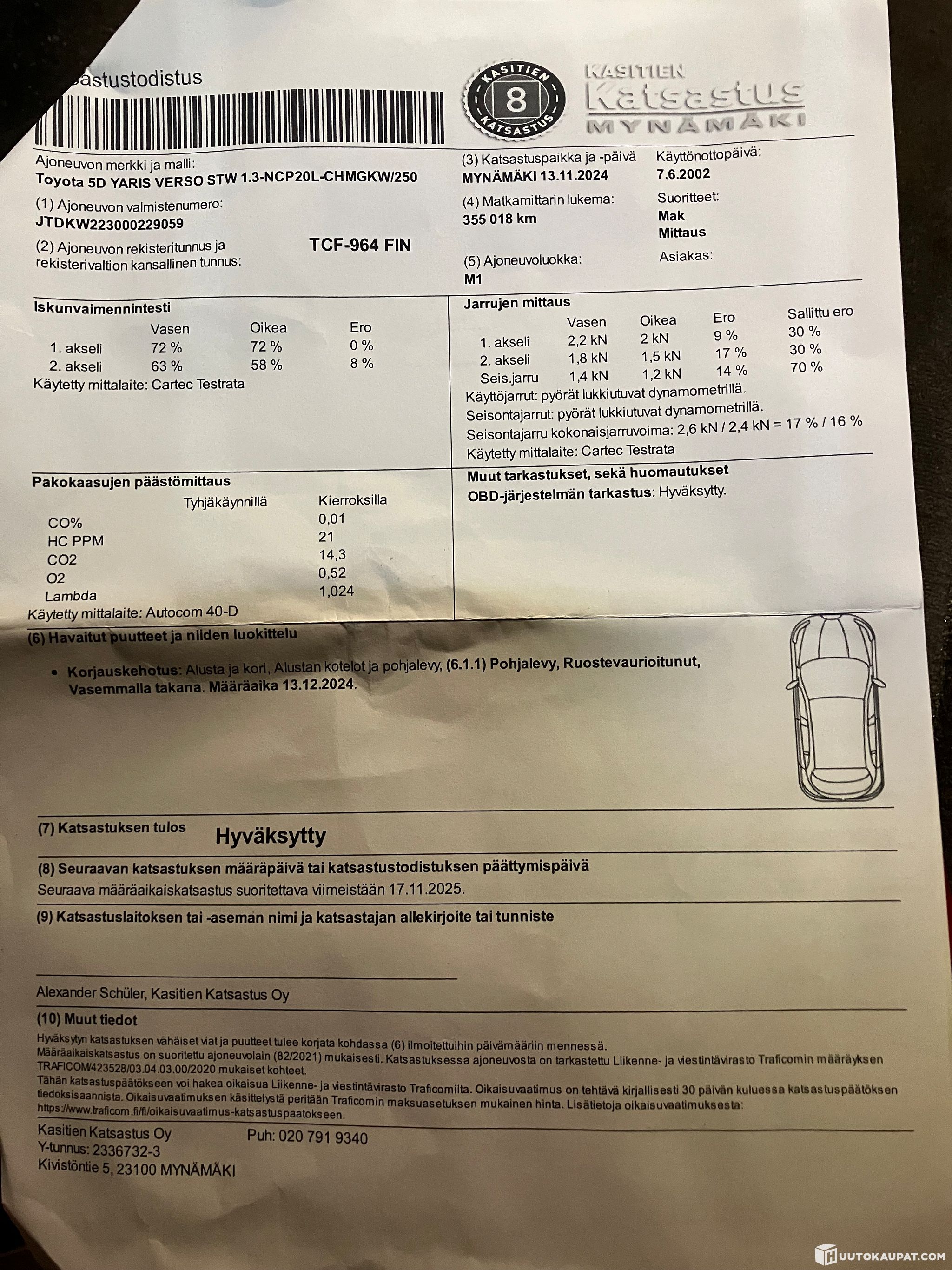 Auto katsastettava välillä:13.11.2024 - 17.11.2025