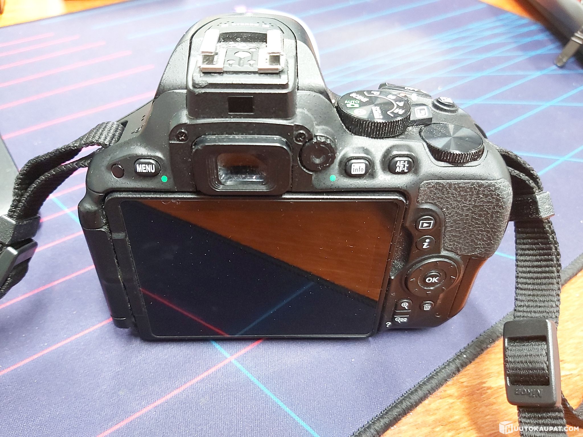 Autofocus APS-C DSLR camera introduced by Nikon in 2015. It has a fully articulated 3" rear LCD and the ability to record 1080p video. Plastic body available in black.