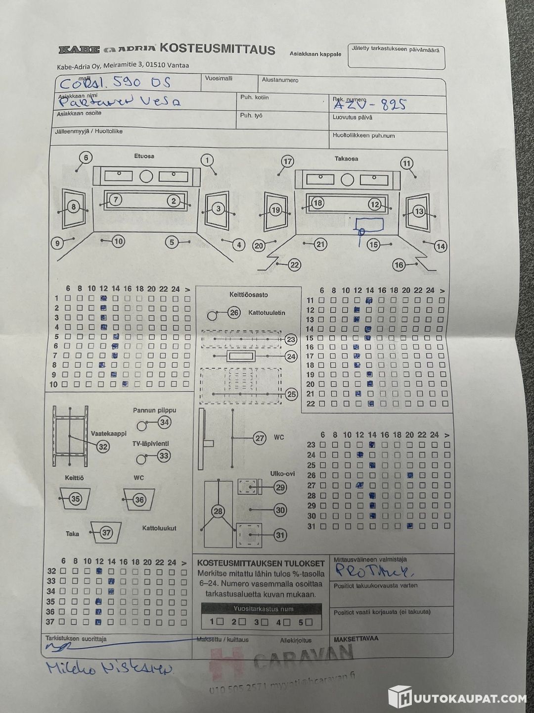 Edellisen omistajan toimesta tehty kosteusmittaus, mutta olemme jälkeenpäin huomanneet kohonneita kosteusarvoja.