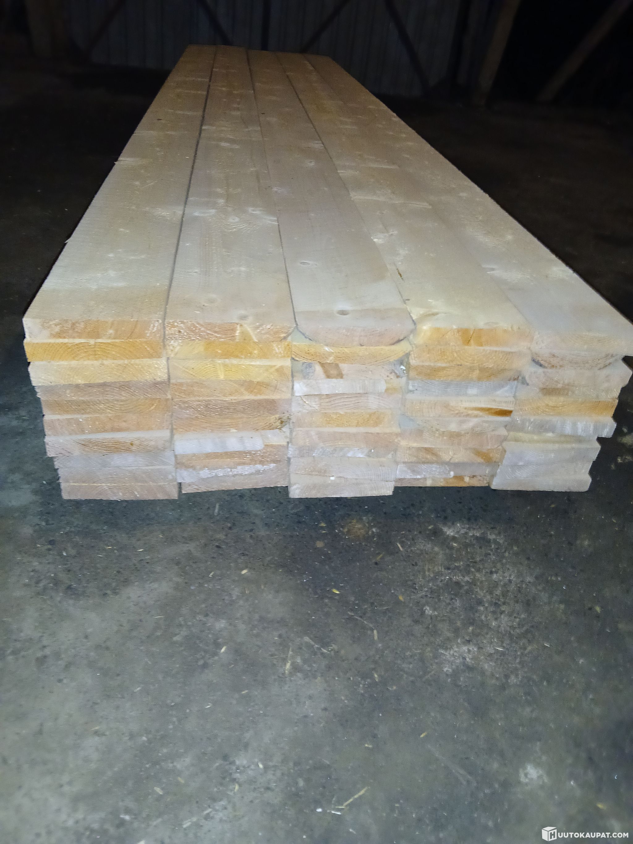 Erä uutta käyttämätöntä lautaa leveys 6 tuumaa paksuus 2,6cm eli normilautaa hivenen paksumpaa.lautoja kaikkiaan 50 kappaletta.35 kappaletta 4000mm pitkää.15 kappaletta 3400mm pitkää.eli lautaa on yhteensä 191 metriä.laudat ovat todella kuivaa asiallista maatalouslaatua.tästä nippu lautaa johonkin rakenteluun.laudat tällä hetkellä nipussa.noudettaessa saadaan nippu nostettua trukilla kyytiin veloituksetta muutenkaan ei kohteen noudosta ei peritä mitään noutomaksuja/noutokuluja.noutoajankohta saadaan myös järjestymään todella joustavasti iltaisin ja viikonloppuisinkin.noudolla ei myöskään ole kiirettä saadaan sovittua joustavasti tarvittaessa.ovat katon alla suojassa noutoon asti.