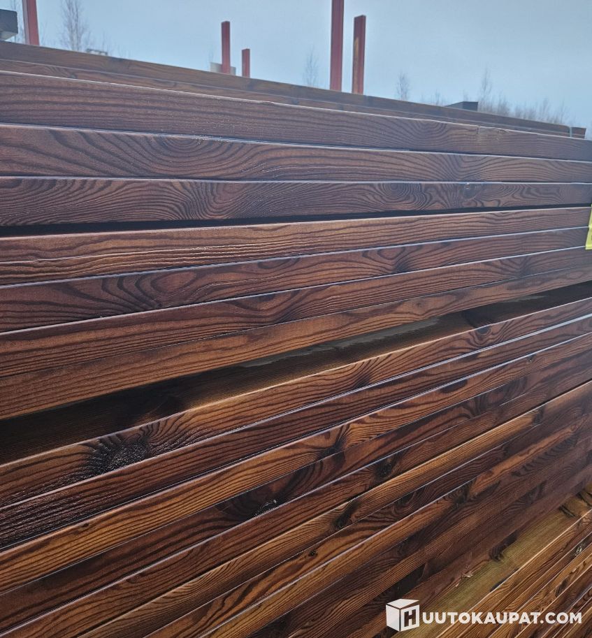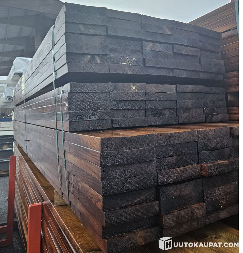 Kaksi nippua sileäksi höylättyä (SHP) järeää korkealaatuista AB-painekyllästettyä ruskeaa mäntylankkua.