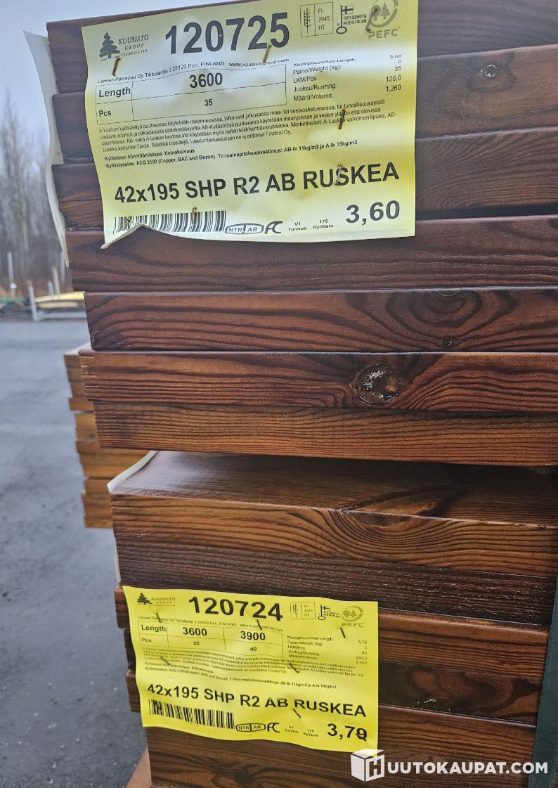 Lankkujen dimesio: 42mm x195mm. Raaka-aine luokka normaalia kestopuuta parempi US+V.