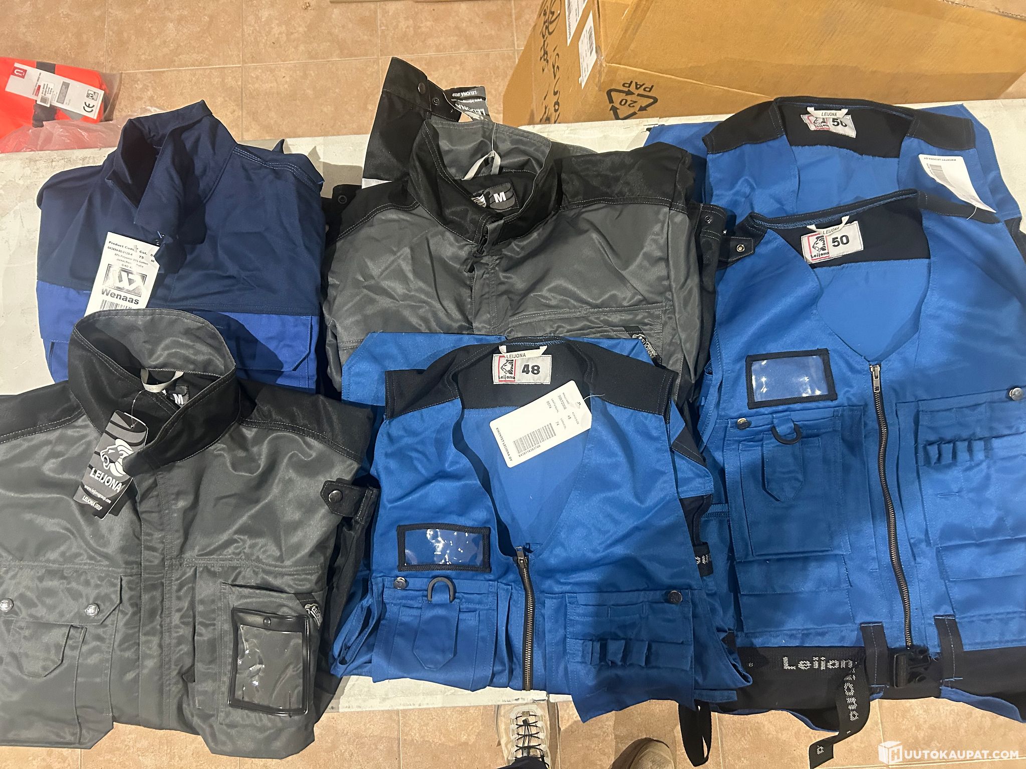 6kpl erä Leijona ja Wenass työtakkeja , riipputasku timpurin liivejä koko : M , 48 ja 50 erän sh. reilu 600,00€