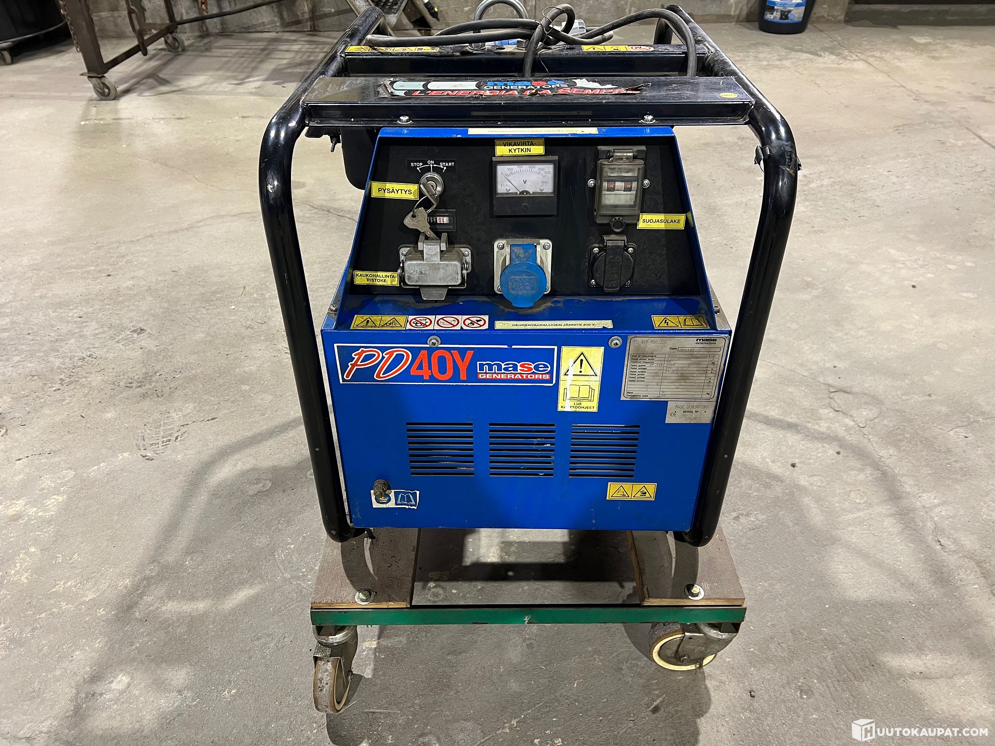 Vähälle käytölle jäänyt diesel käyttöinen agregaatti, joka on pyörällisen alustan päällä, vuosimalli on 2003. Kone on käytetty, mutta toimintakuntoinen. Uusi akku on laitettu nyt syksyllä sekä mukaan löytyy kaukokäyttö kaapeli. Ohjekirja löytyy myös.