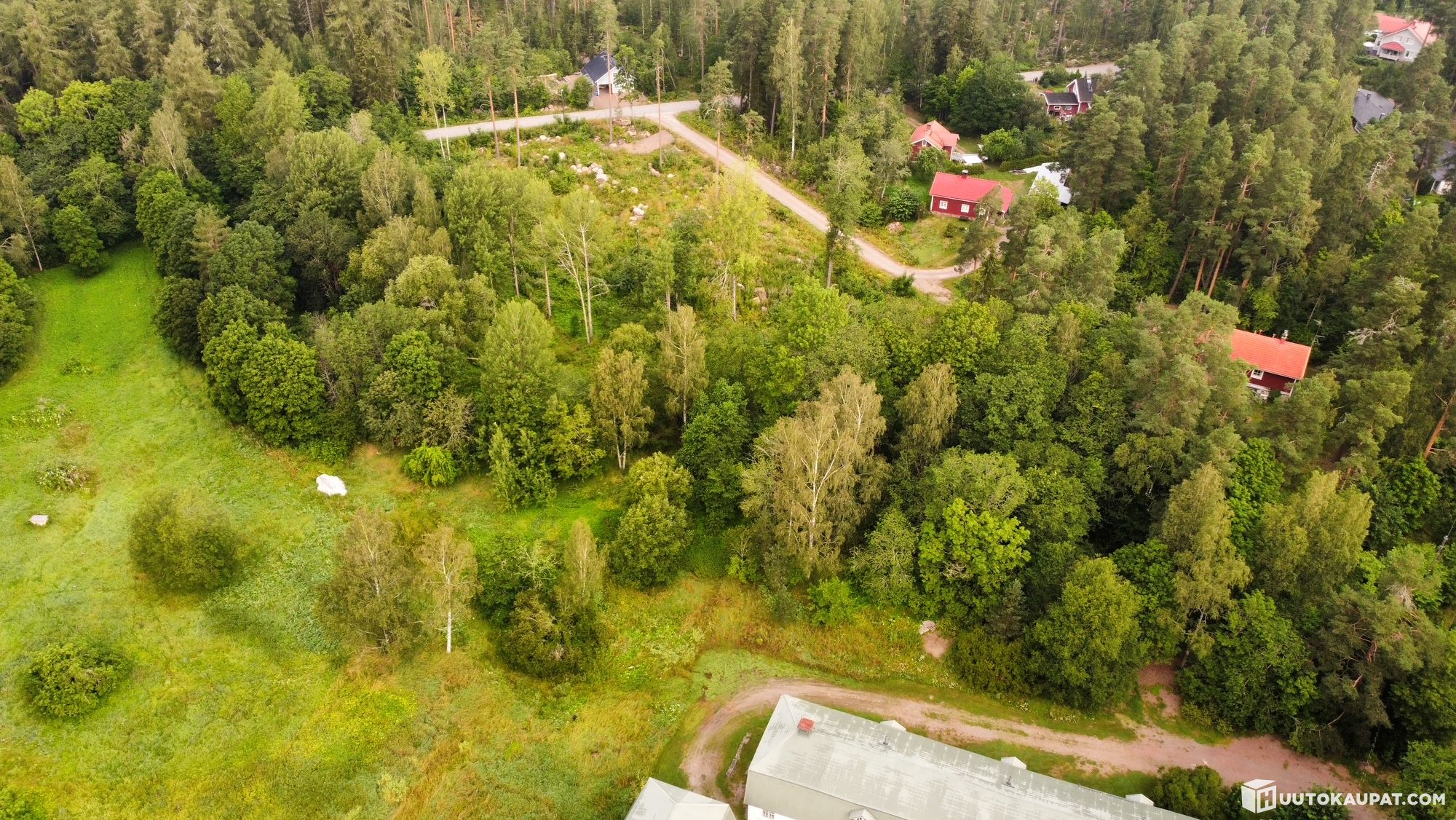 Rauhallinen ja luonnonläheinen tontti, joka rajautuu kyläkatuihin ja luonnonniittyyn.