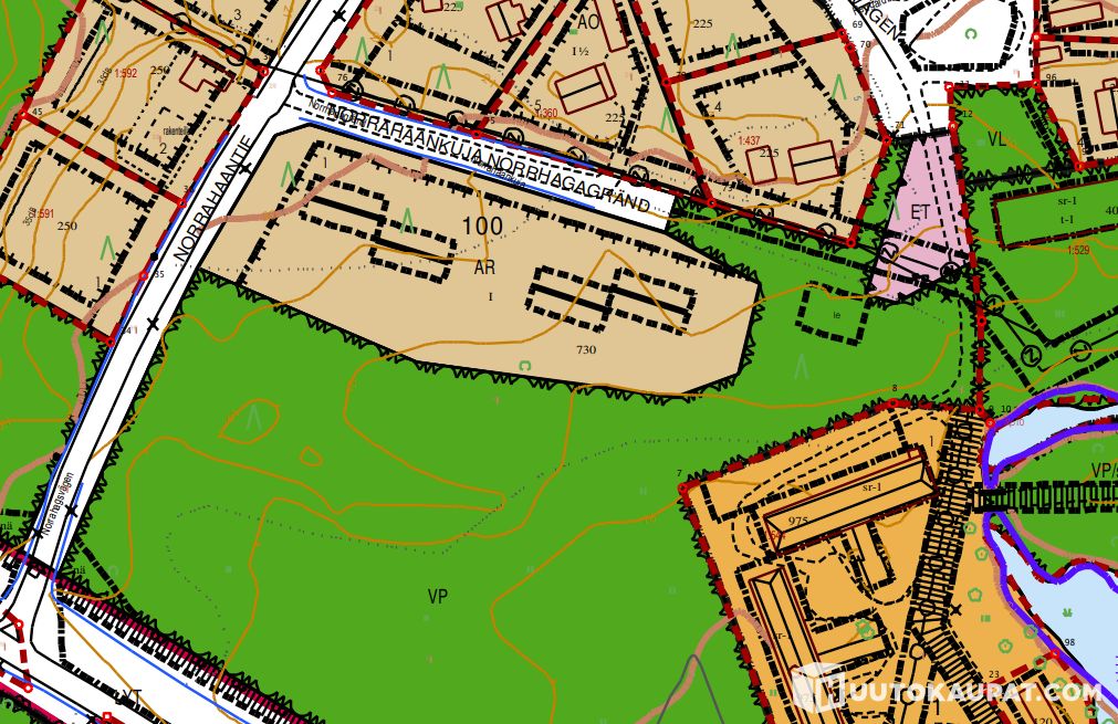 730 m² rakennusoikeus kaavatontilla. (asemakaava 1989)