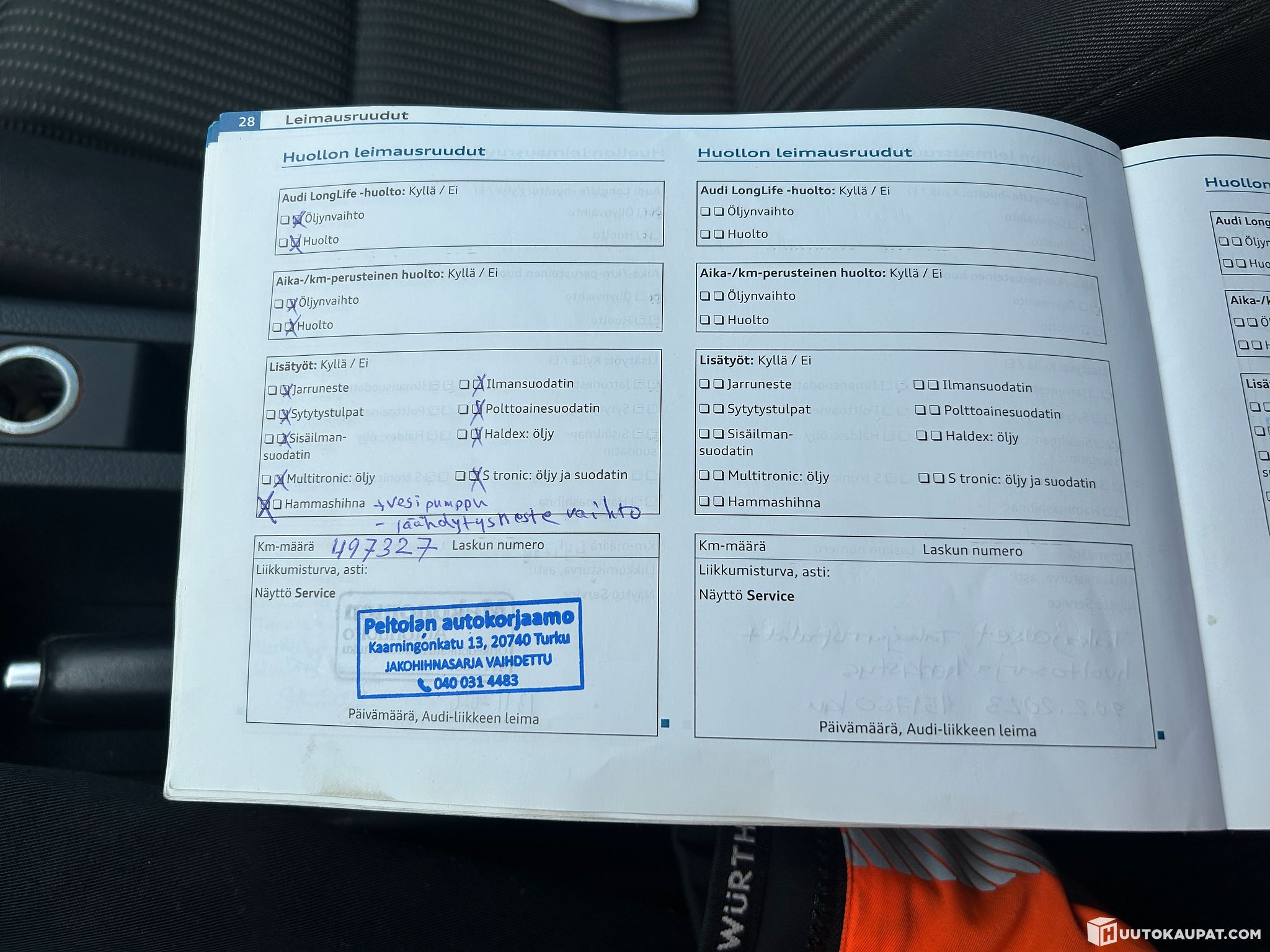 Kaikki kuitit ja huollot on tallella.