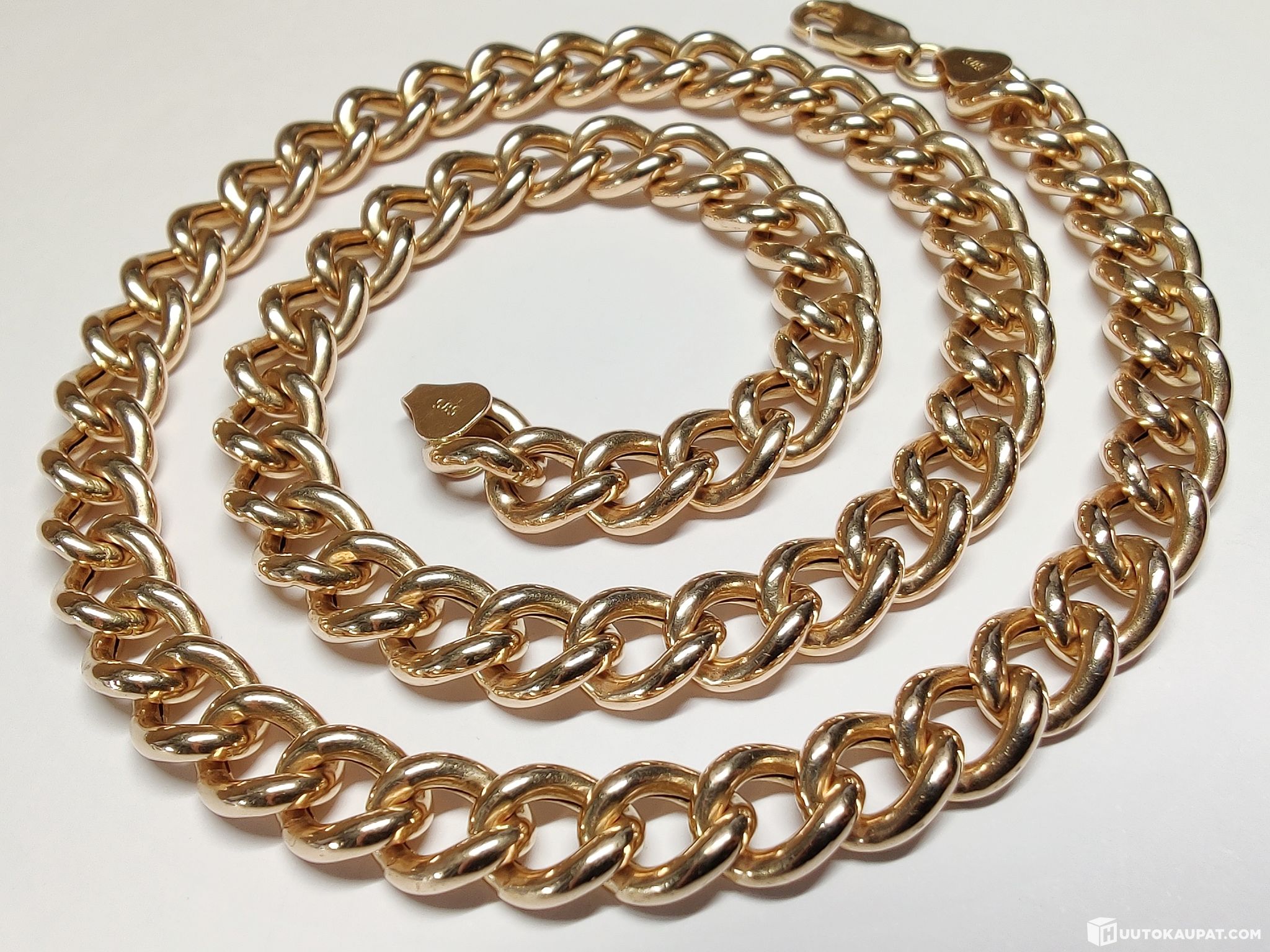 Jykevä kotimainen panssarikaulaketju 585 14k kultaa. Lukko 18k 750 kultaa. Harvoin tarjolla näillä spekseillä!