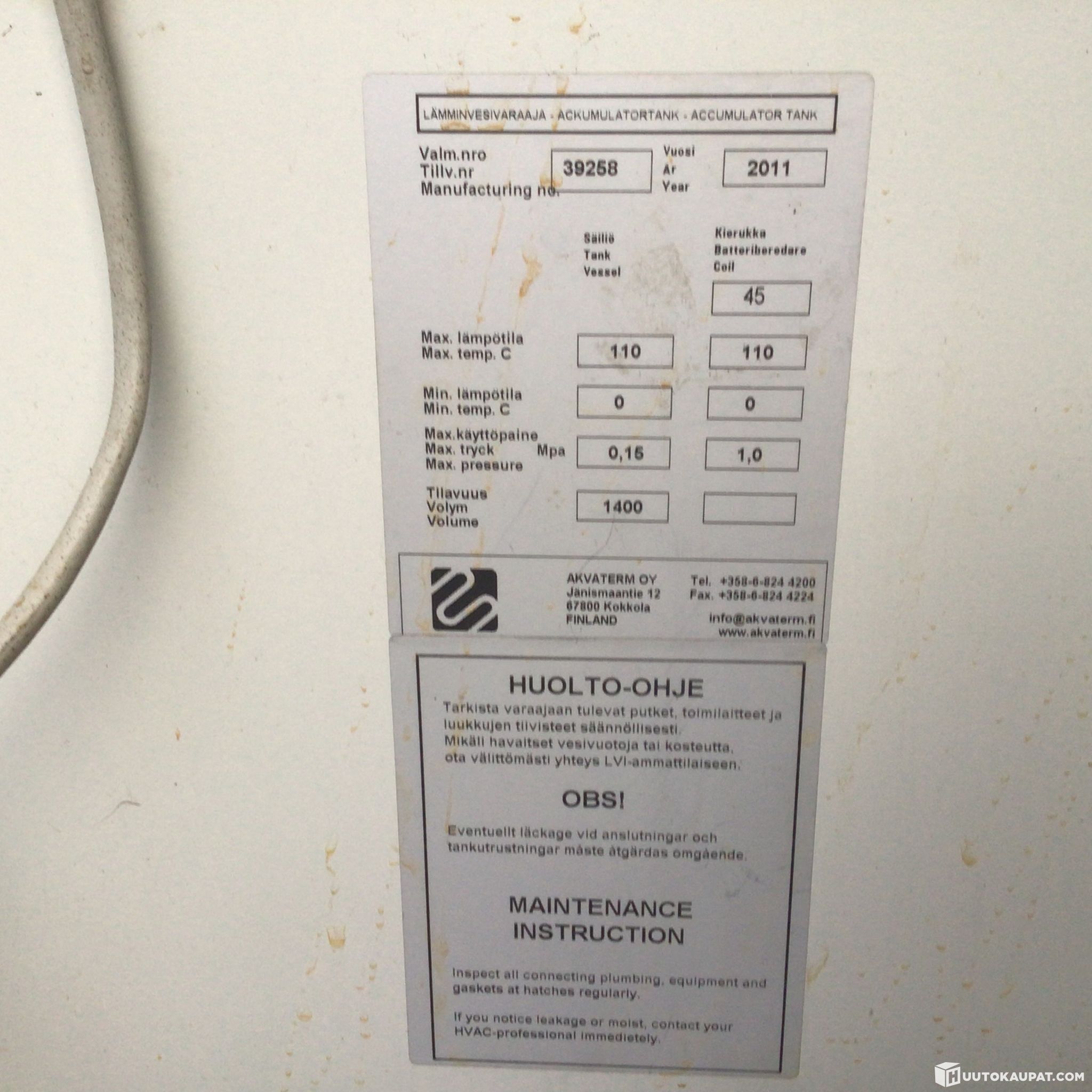 Käytetty 1400 litran varaaja.