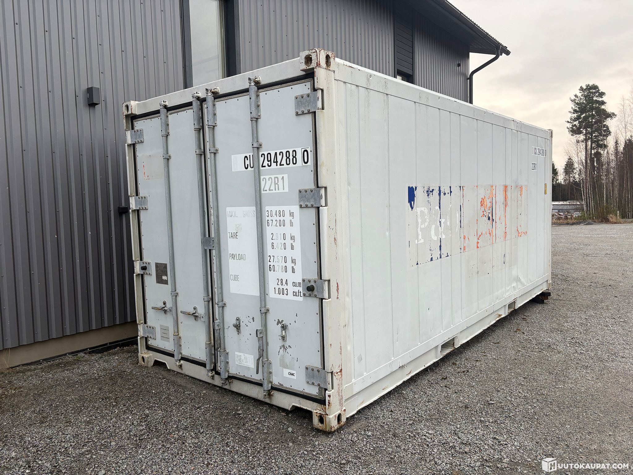 6 metrinen "tehtaalainen" uretaanieristetty kylmäkontti.
