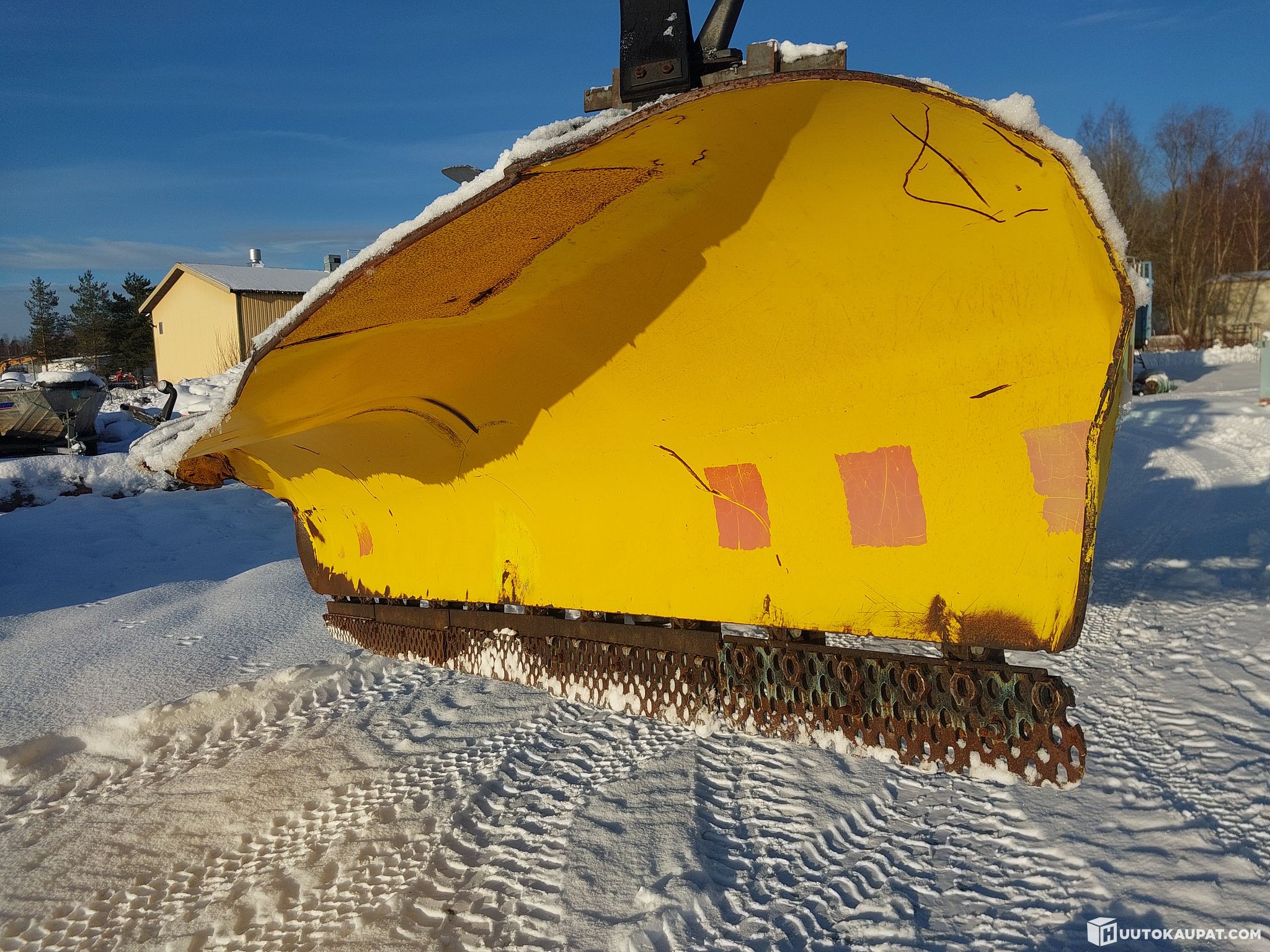 Kuorma-Auton /Pyöräkoneen aura joustoterät leveys noin 4 metriä kääntyy molempiin suuntiin. Nostetaan kyytiin.