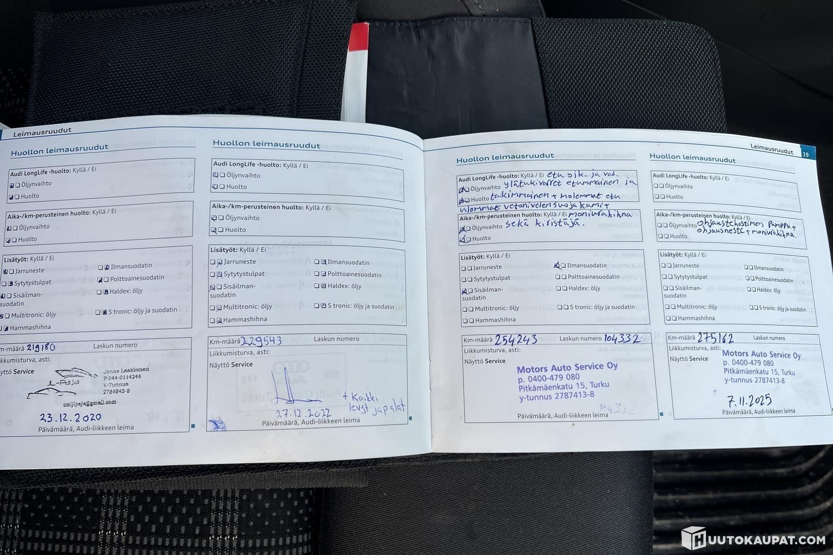 -Huoltokirjan viimeinen kilometriluku kirjoitettu värin.