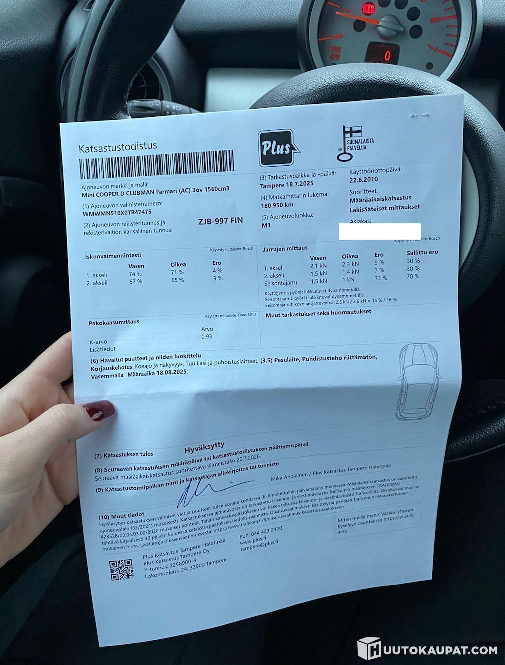 Katsastettu säännöllisesti: Viimeisin huolto tehty katsastuksen jälkeen heinäkuussa.
