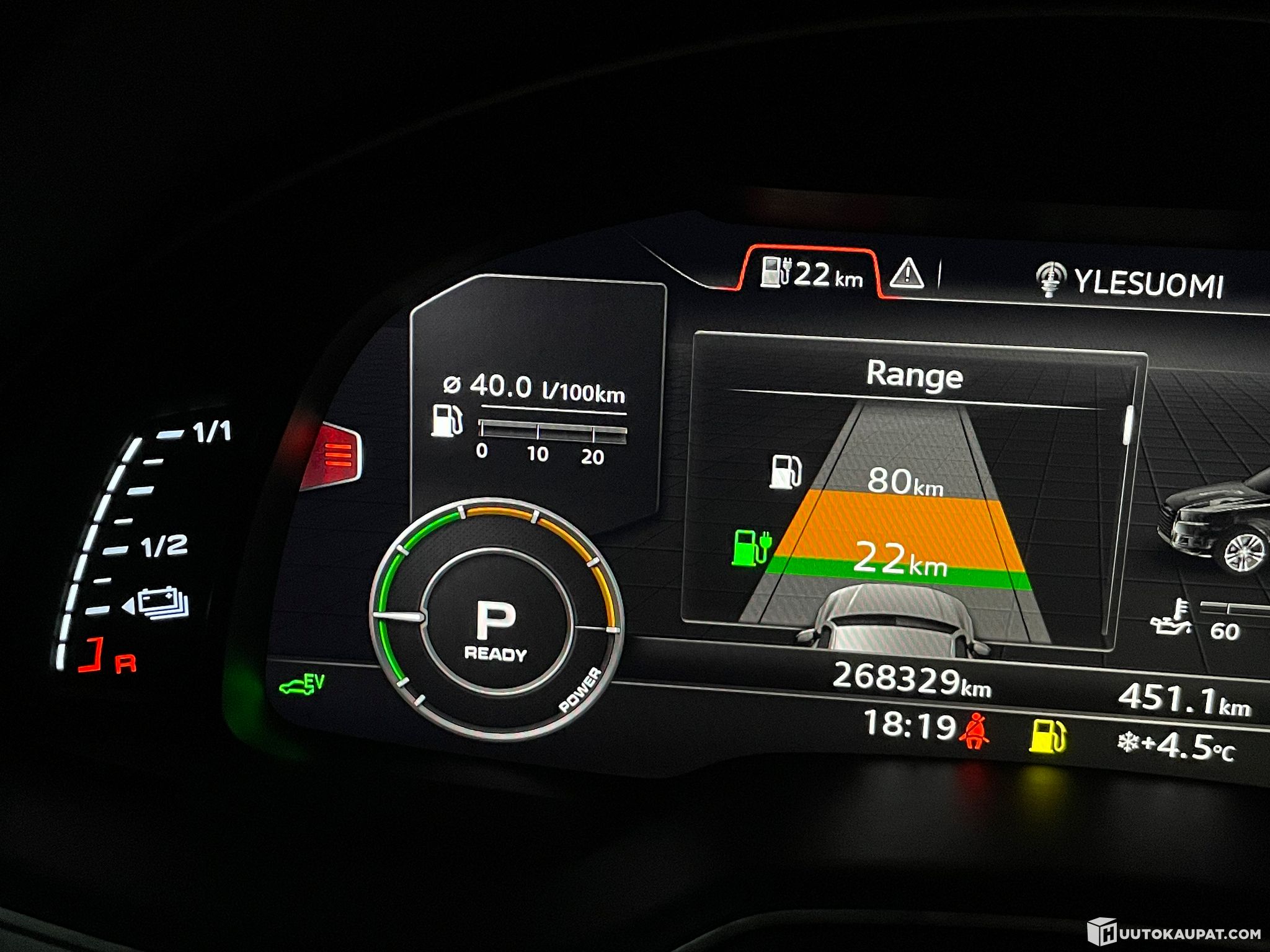 Akku 100% ladattuna näyttää 22km sähkörangea