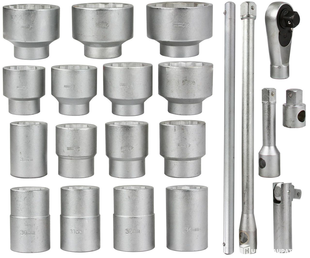 1 tuuman hylsyavaimet: 30; 31; 32; 34; 36; 38; 41; 46; 50; 55; 60; 65; 70; 75; 80 mm