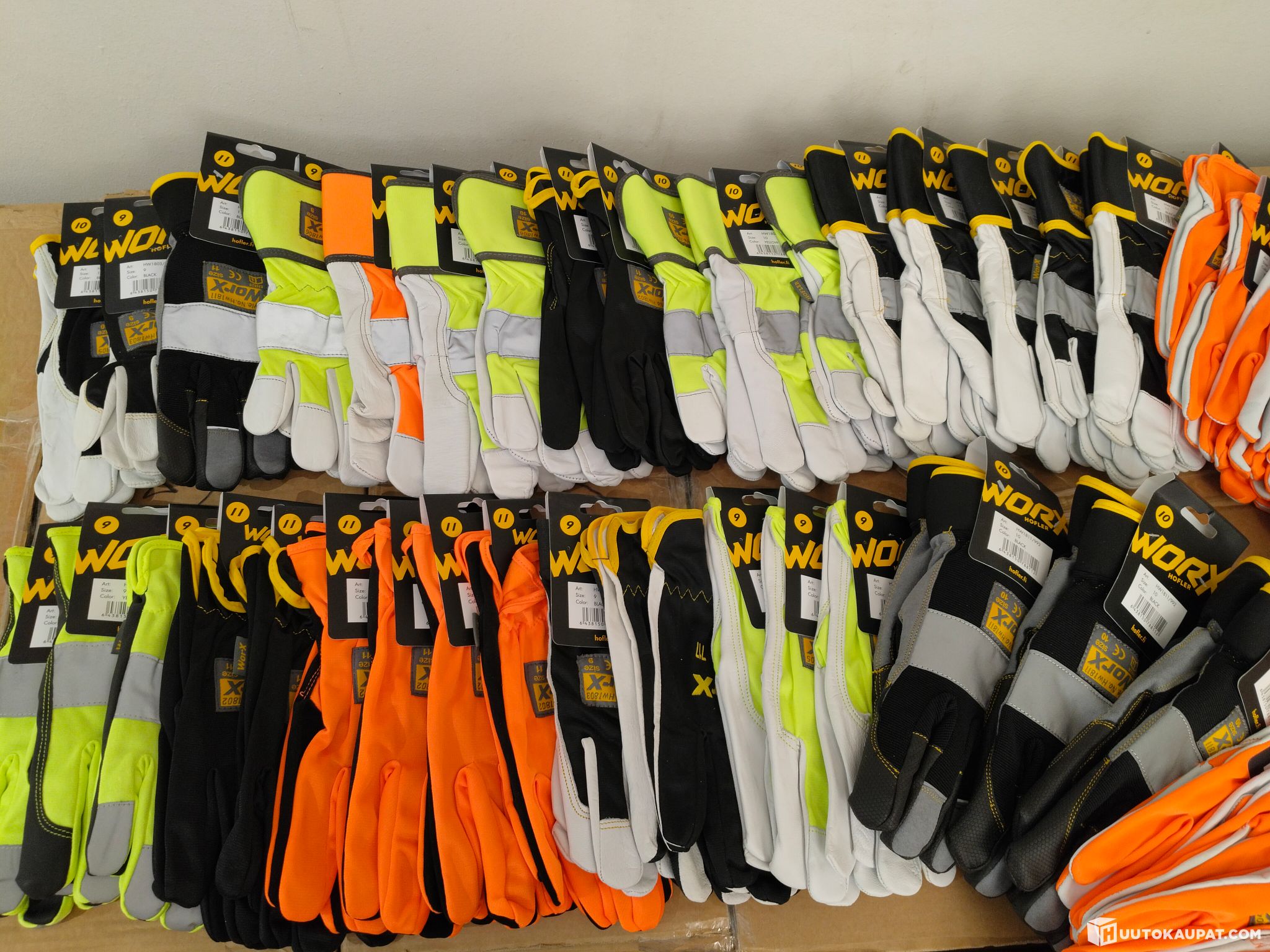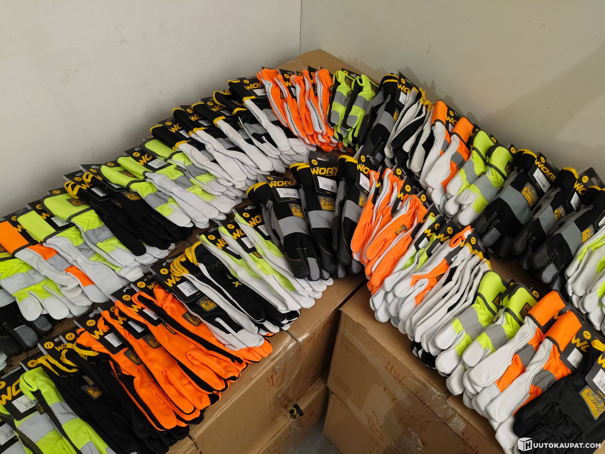 Uudet Worx-merkin työ- ja turvahanskasatsi. Yhteensä 75 paria.