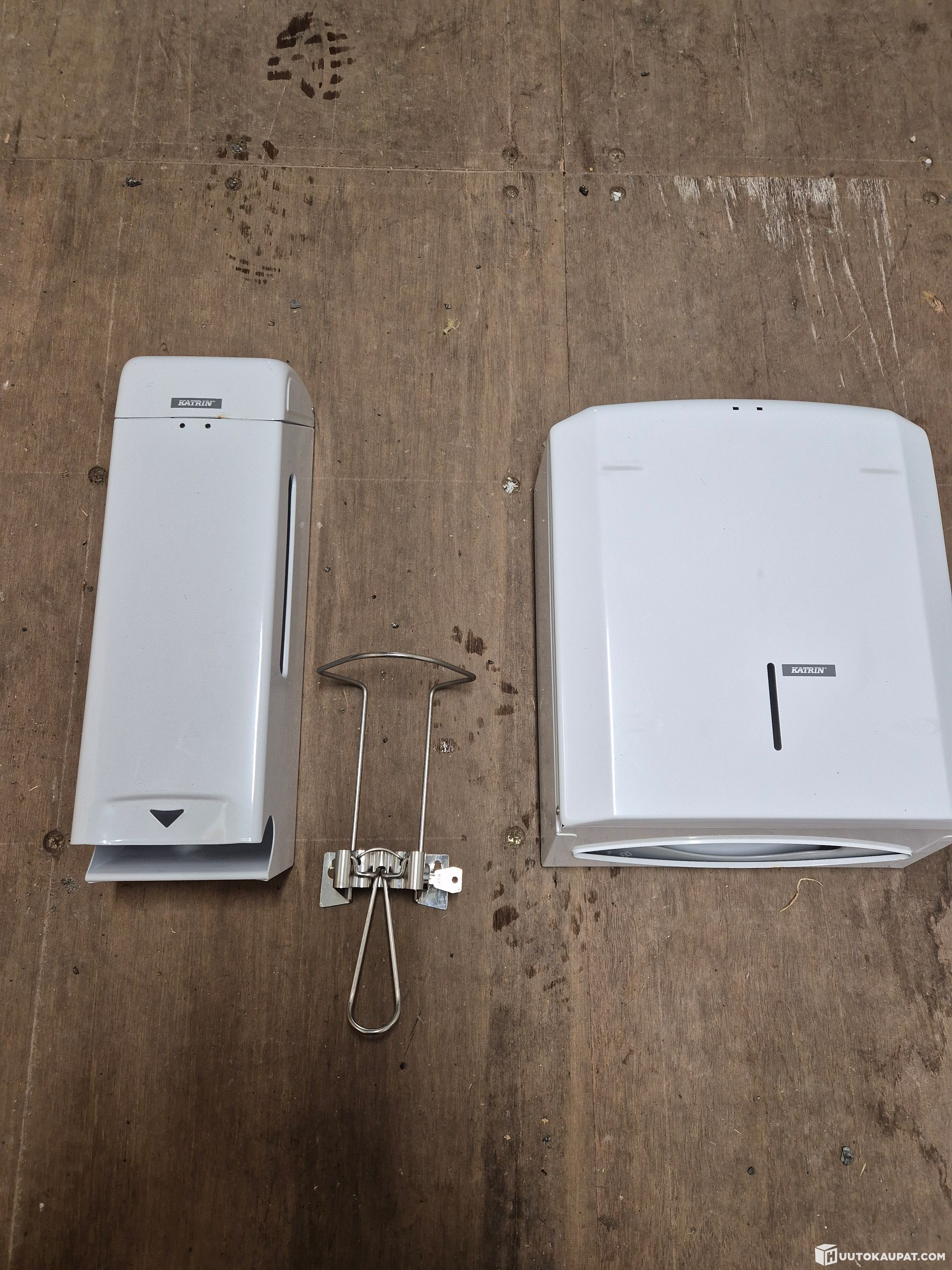 Käsipyyheannostelija Katrin valkoinen noin 70kpl ja Katrin wc-paperiannostelija 3 rullalle valkoinen noin 65kpl