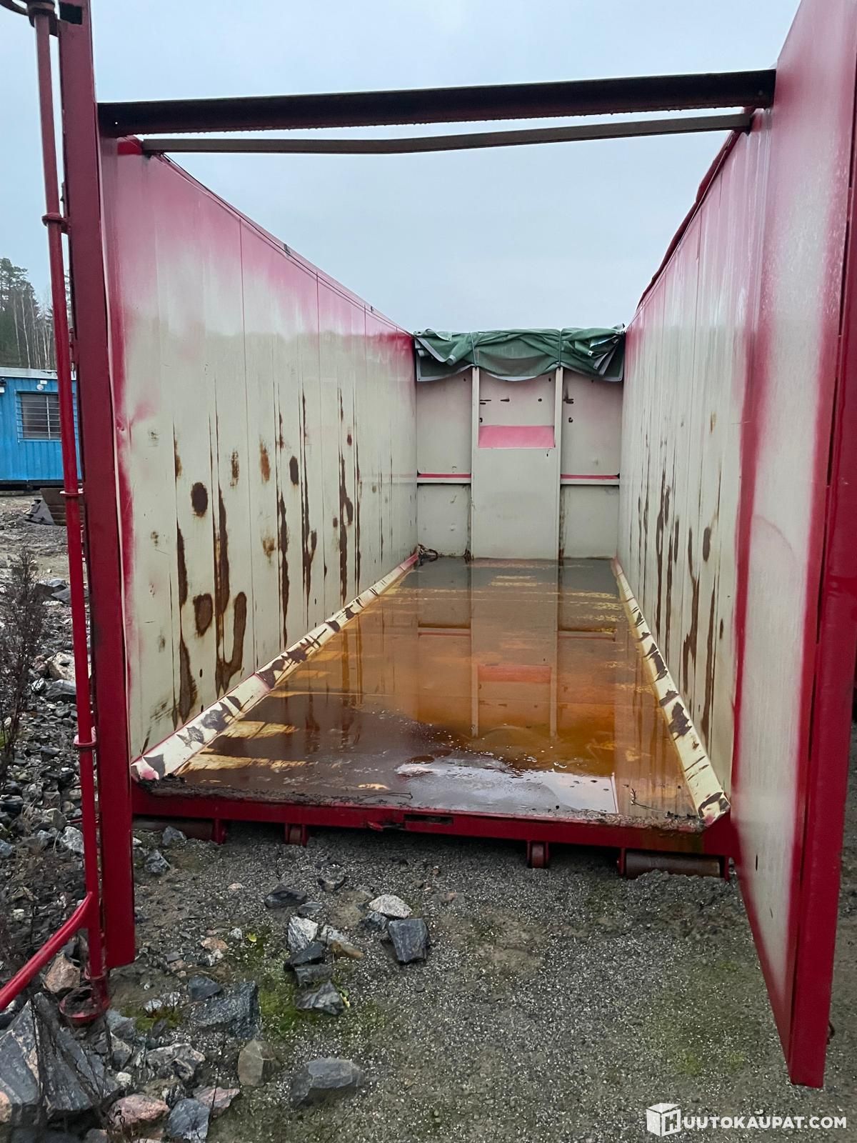 Lavan tilavuus n.47m3, laidat 3mm ja pohja 4mm. Veivipeitto ja hakeverkko.