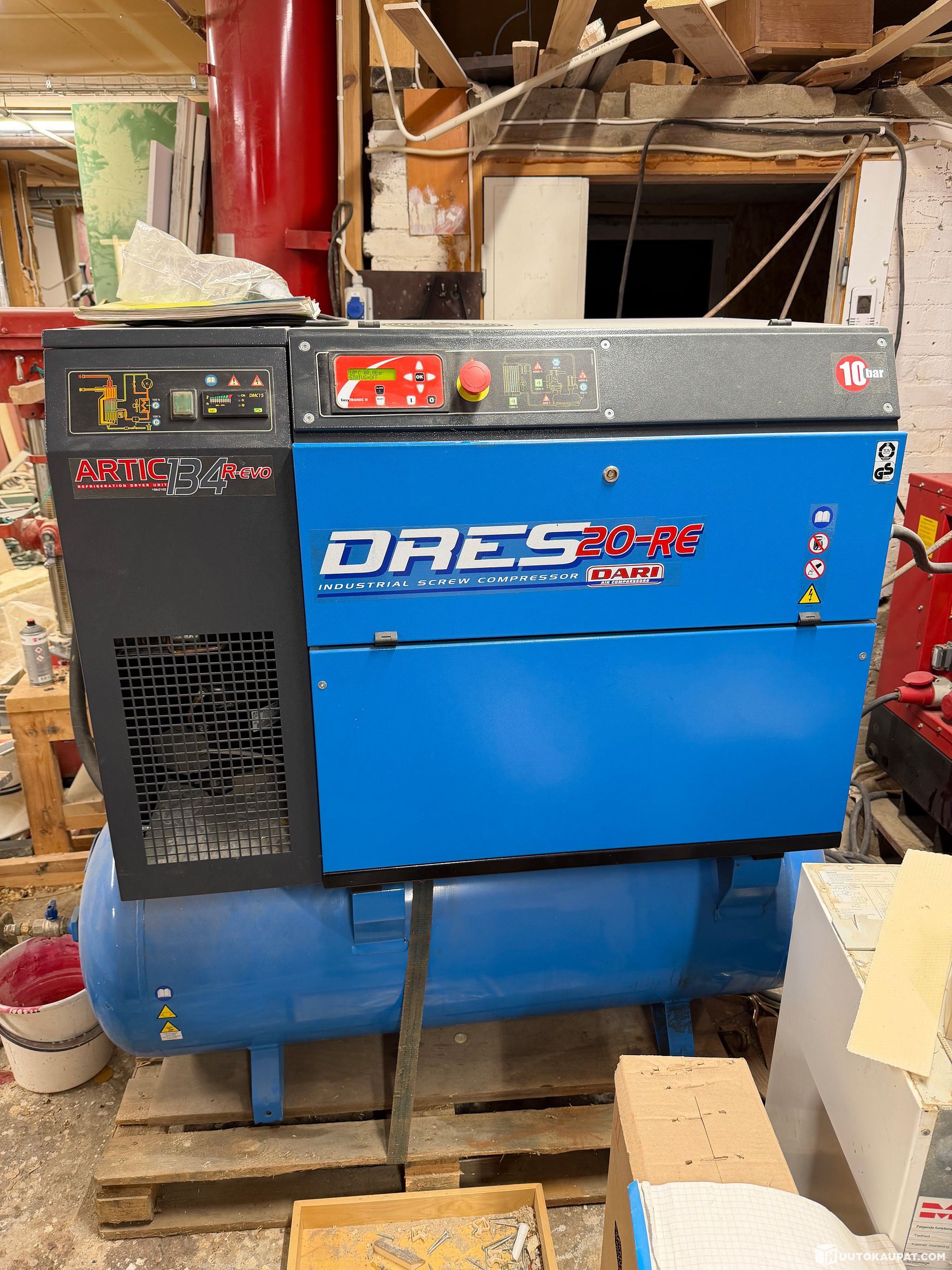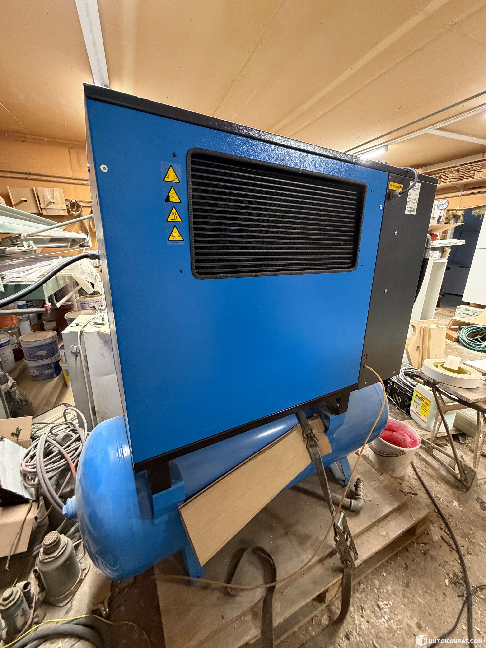 Vähällä käyttötunneilla ollut ruuvikompressori, ollut käyttämättömänä sisätilassa. Mukaan Suomenkielinen huolto-ja käyttöohjekirja. Sisältää ilmankuivaimen, joka kompressorin kyljessä, sekä alla olevan 270L säiliön.