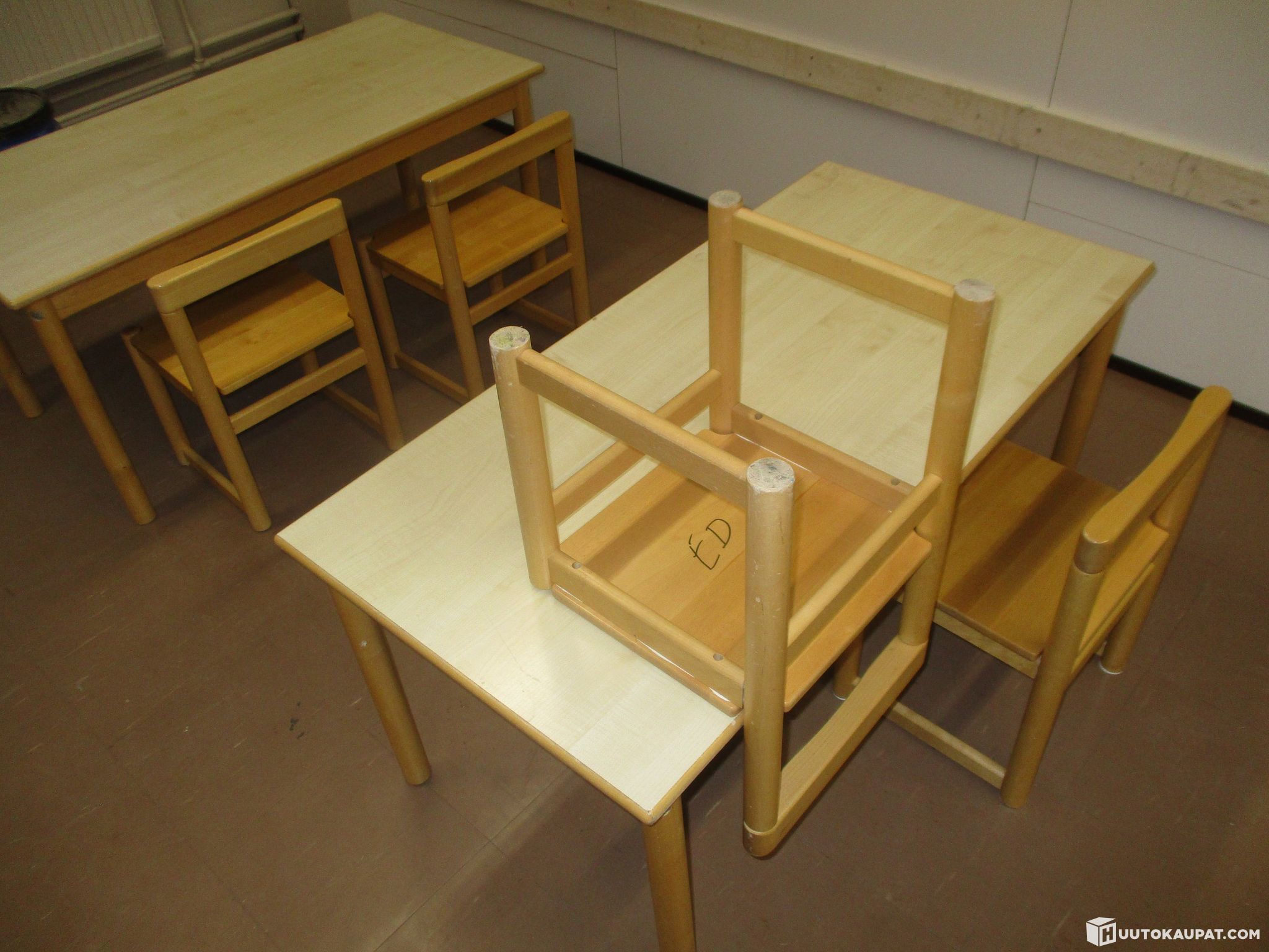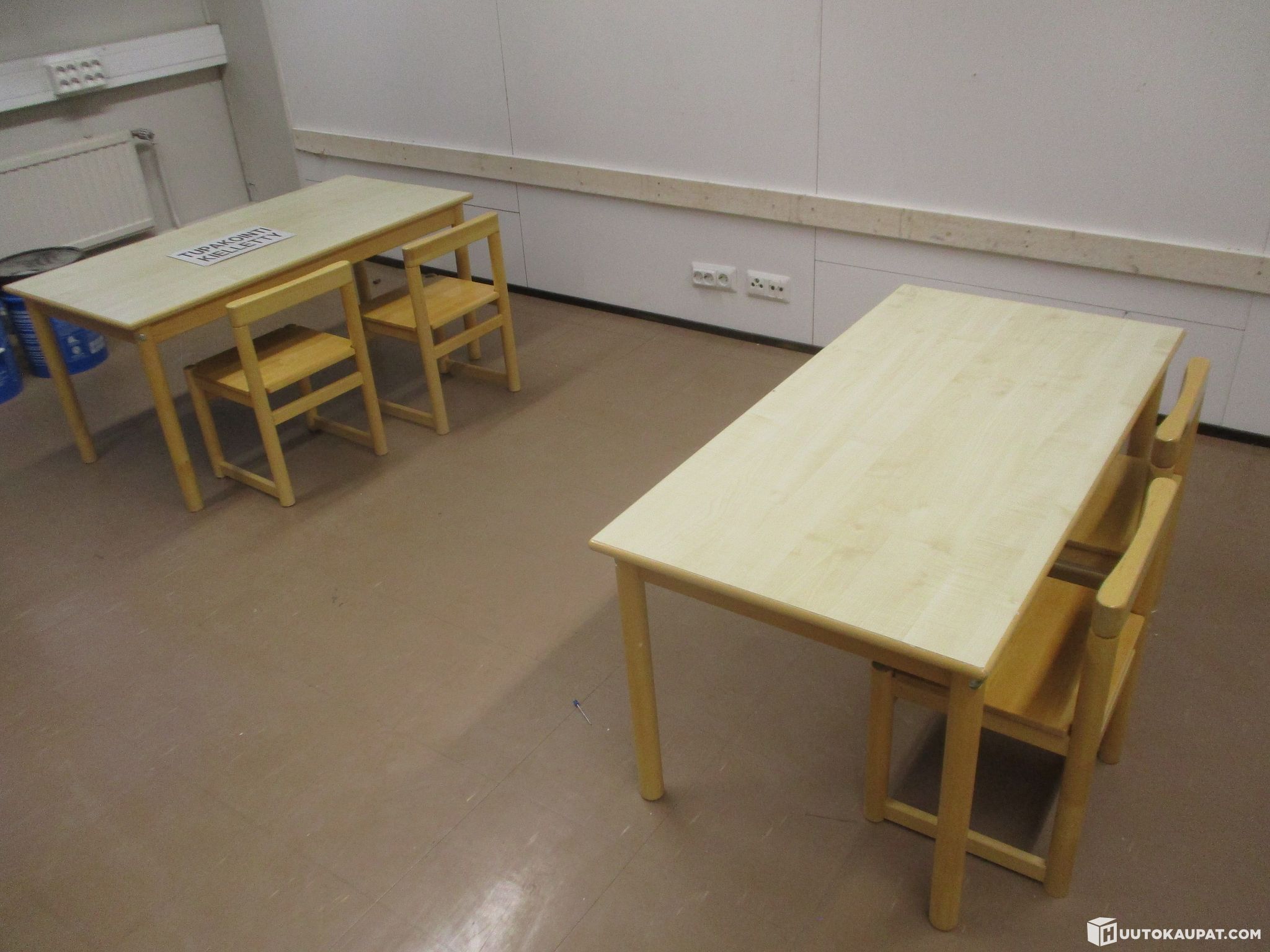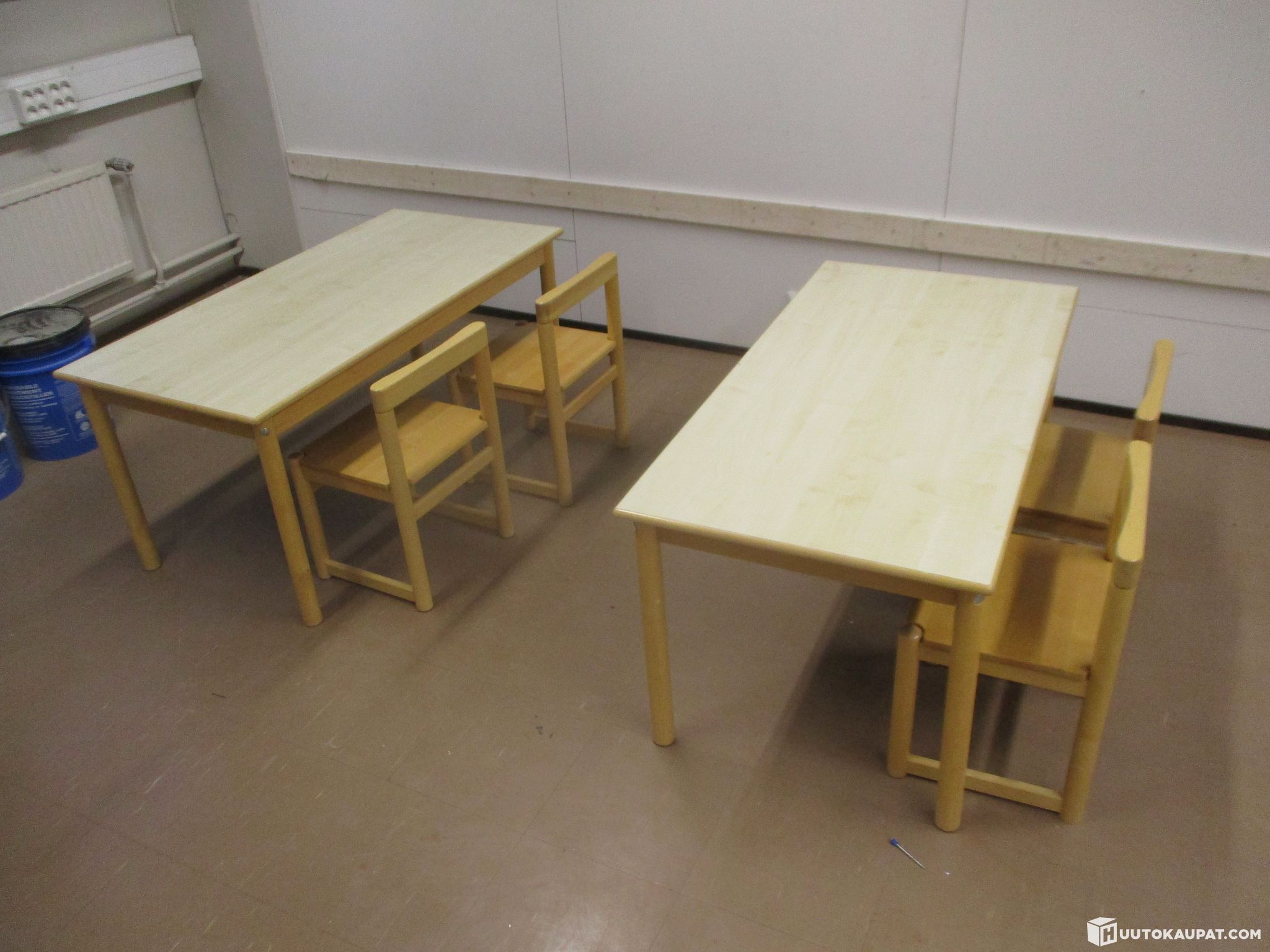 Pienille lapsille sopivat kaksi pöytää ja neljä tuolia. Olleet päiväkodissa käytössä, poistetaan tarpeettomina. Kunto käytetty mutta täysin toimiva. Samaa sarjaa myynnissä useampikin erä.
