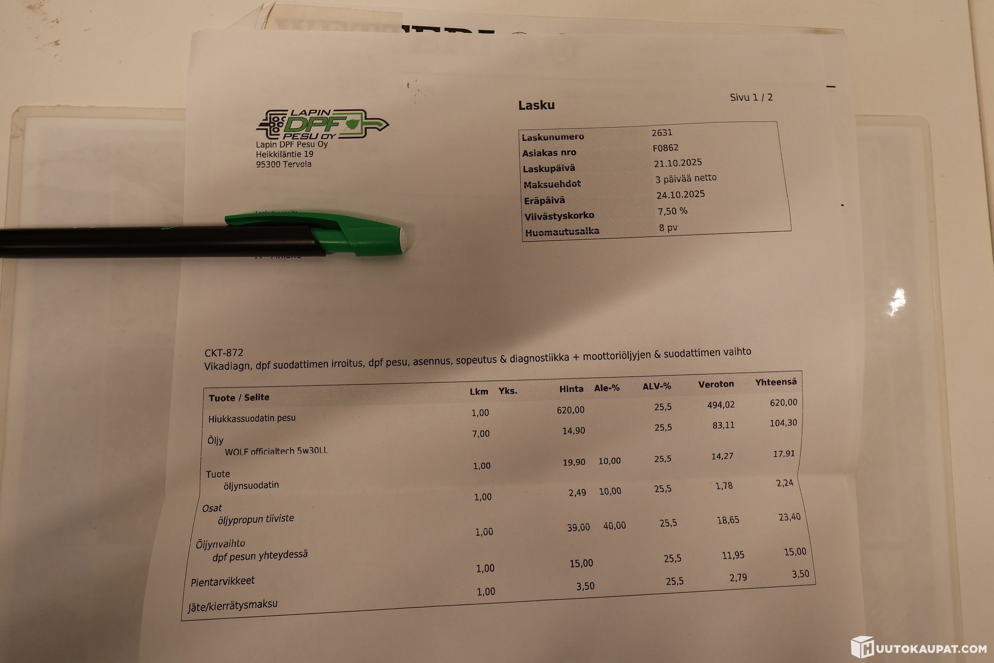 Auto on ajettu Sodankylästä Lappeenrantaan eikä mitään ongelmia matkalla ollut