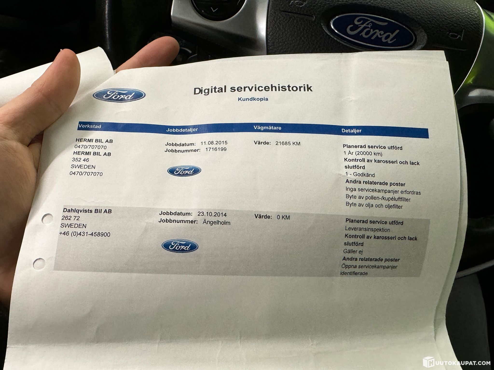 Ennen auton myyntiinlaittoa suoritimme autolle koeajon ja kuntoarvion, joiden aikana teimme autosta seuraavat havainnot: