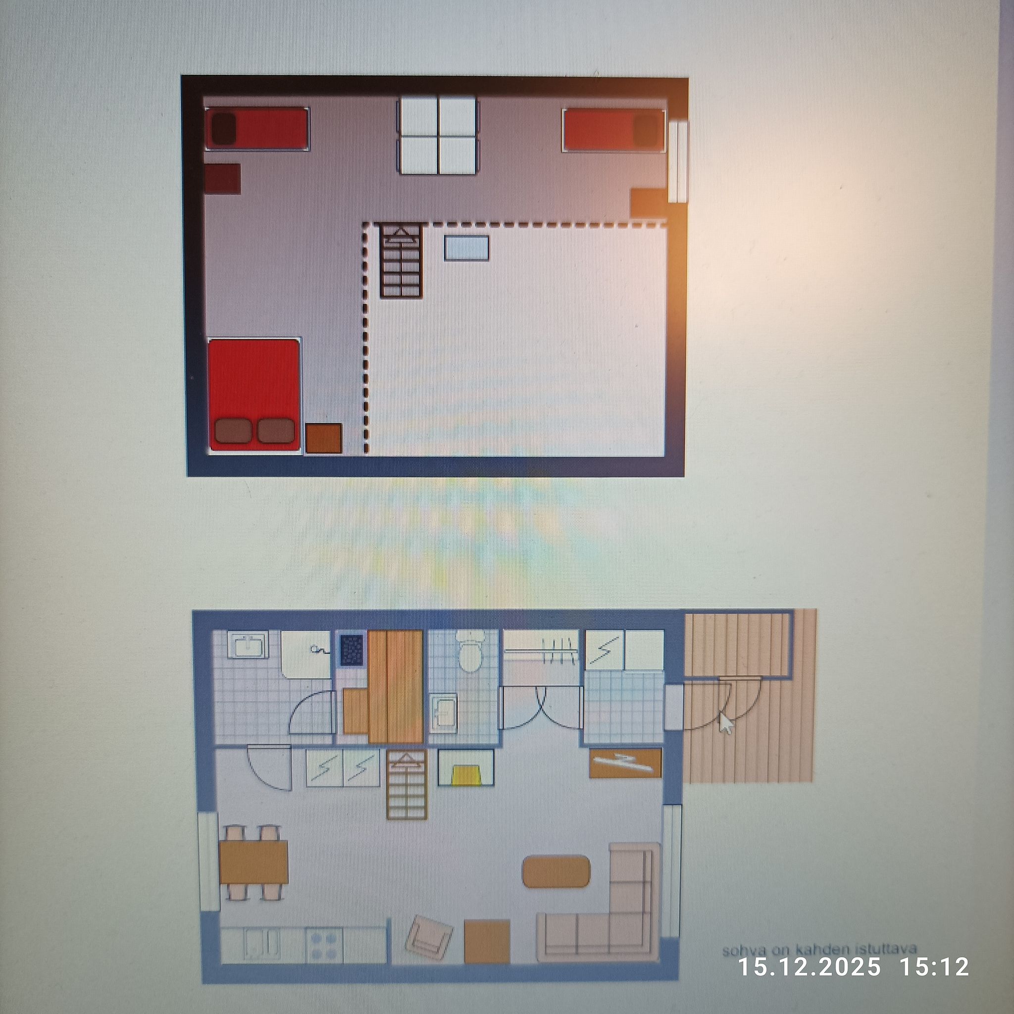 Vuodepaikat neljälle (kaksi makuuhuoneen parisängyssä ja kaksi lisävuodetta vuodesohvasta).